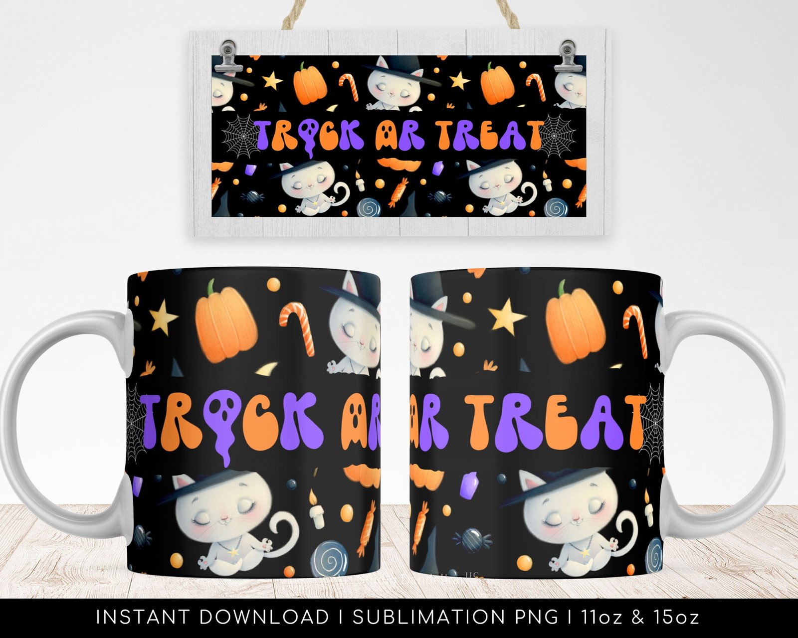 Halloween Sublimation Mug, Trick or Treat PNG Mug File for Sublimation, Mug Halloween Pattern, Mug PNG file, Mug Wrap Transfers 11oz & 15oz.