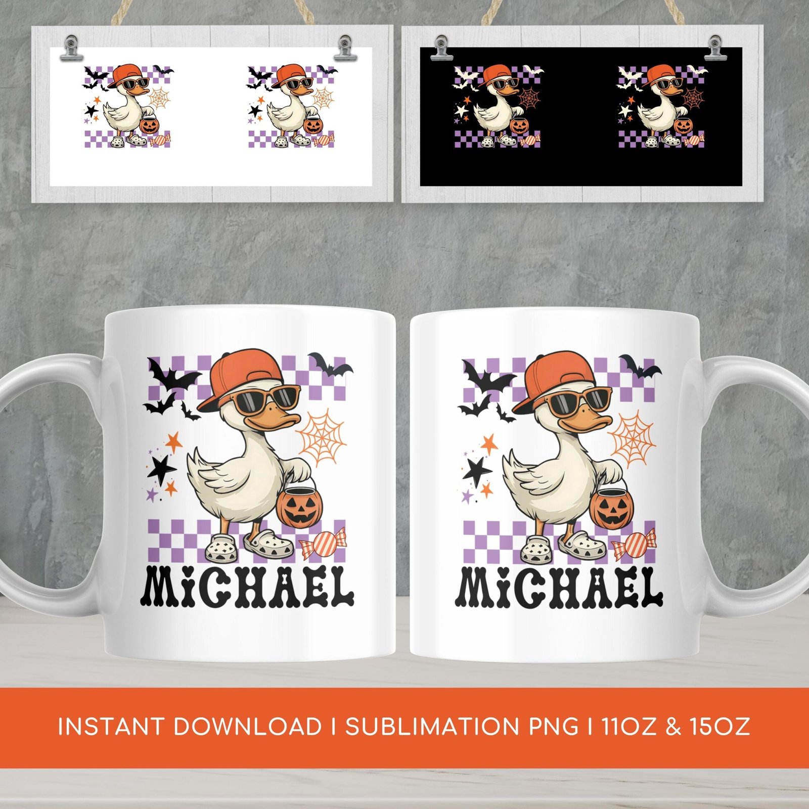 Halloween PNG Mug, Add Name Mug File for Sublimation, Halloween Goose Mug Wrap, Custom Kids Mug Transfers 11oz & 15oz, Digital Download.