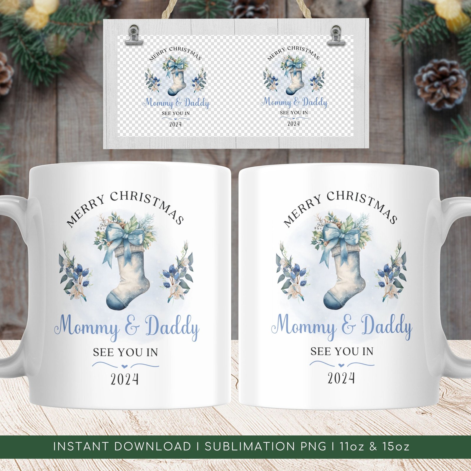 Mommy and Daddy Christmas Mug PNG, Pregnancy Announcement Xmas Sublimation Mug, Wrap Transfer Design, Mug Press Template, Instant Download.