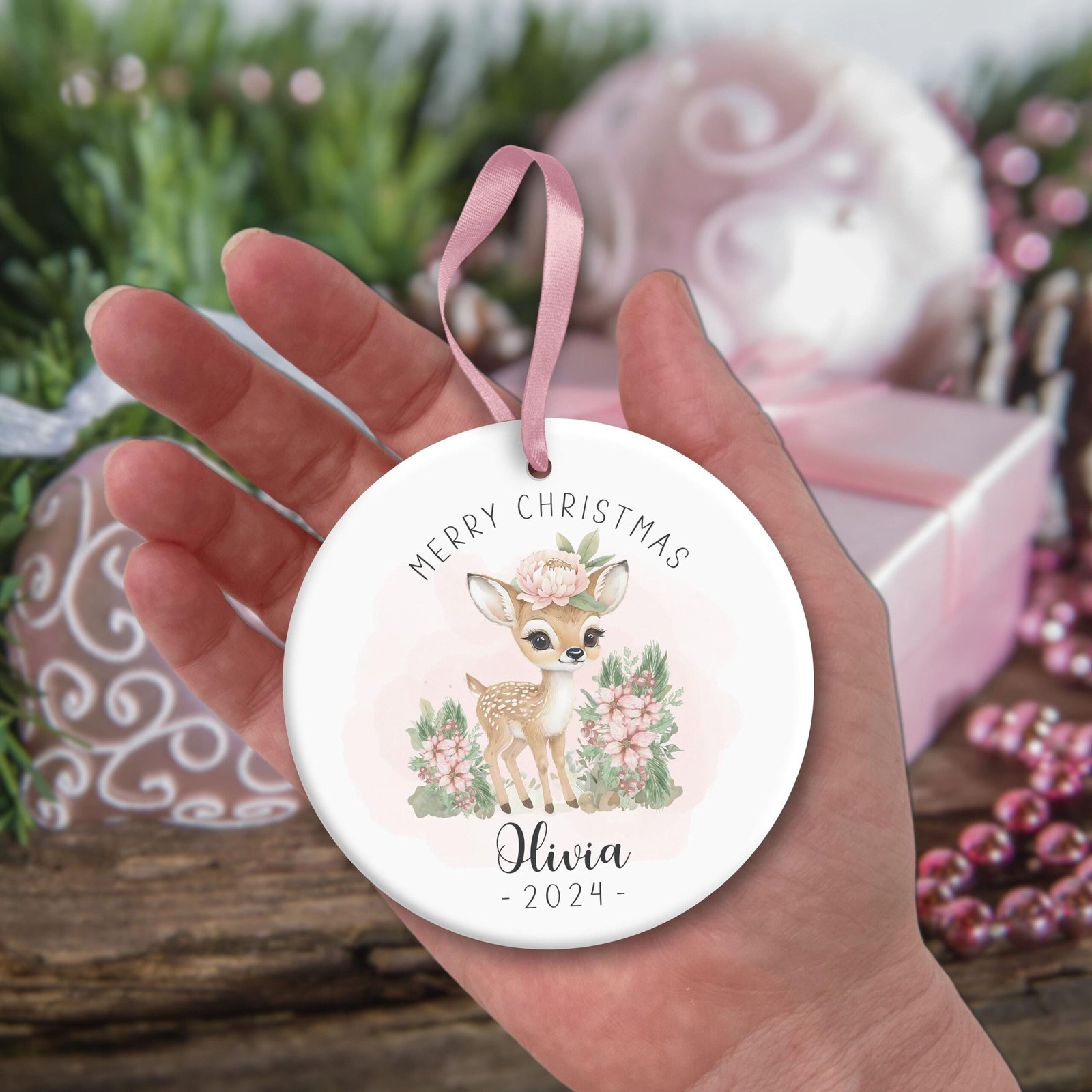 Personalized Baby’s 1st Christmas Ornament, Cute Baby Deer PNG Instant Download, Christmas Sublimation Ornament, PNG Wrap Transfers Design.