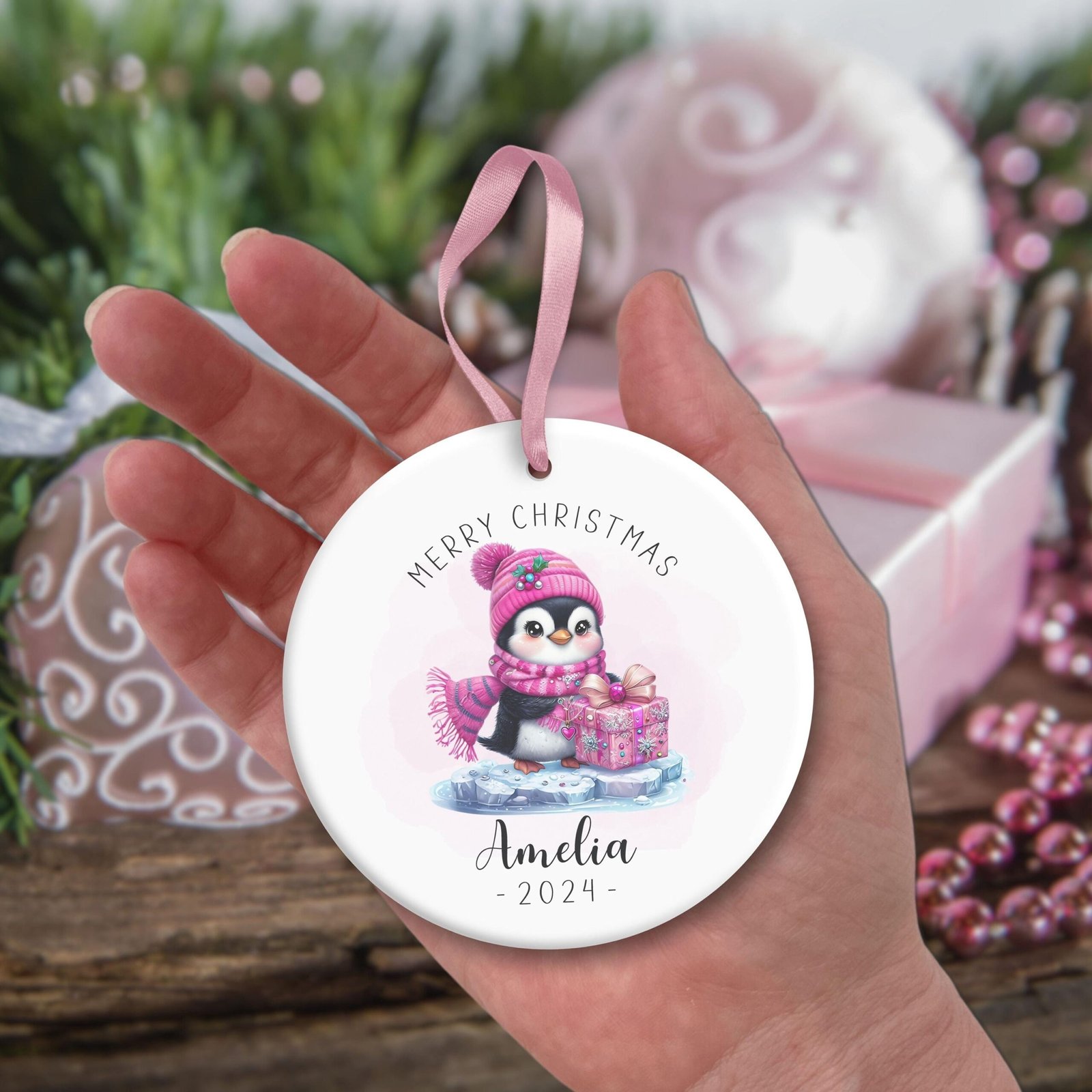 Personalized Christmas Ornament PNG, Baby Penguin PNG, Christmas Keepsake Sublimation, Christmas Round Ornament Design, Xmas Custom Bauble.