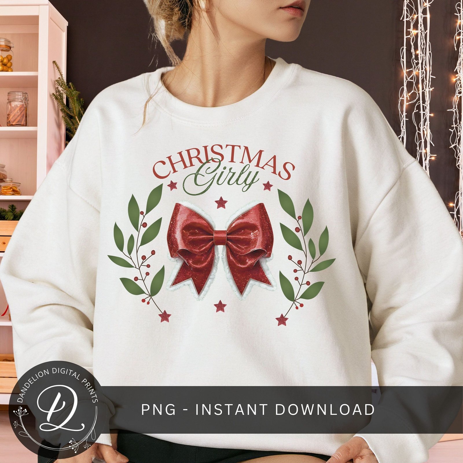 Christmas Girly PNG, Xmas Coquette Bow PNG, Christmas Santa Bow PNG, Retro Christmas Sublimation, retro Holidays Png, Girly Holiday Png.