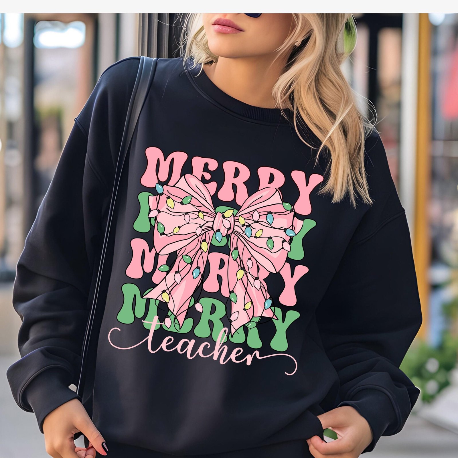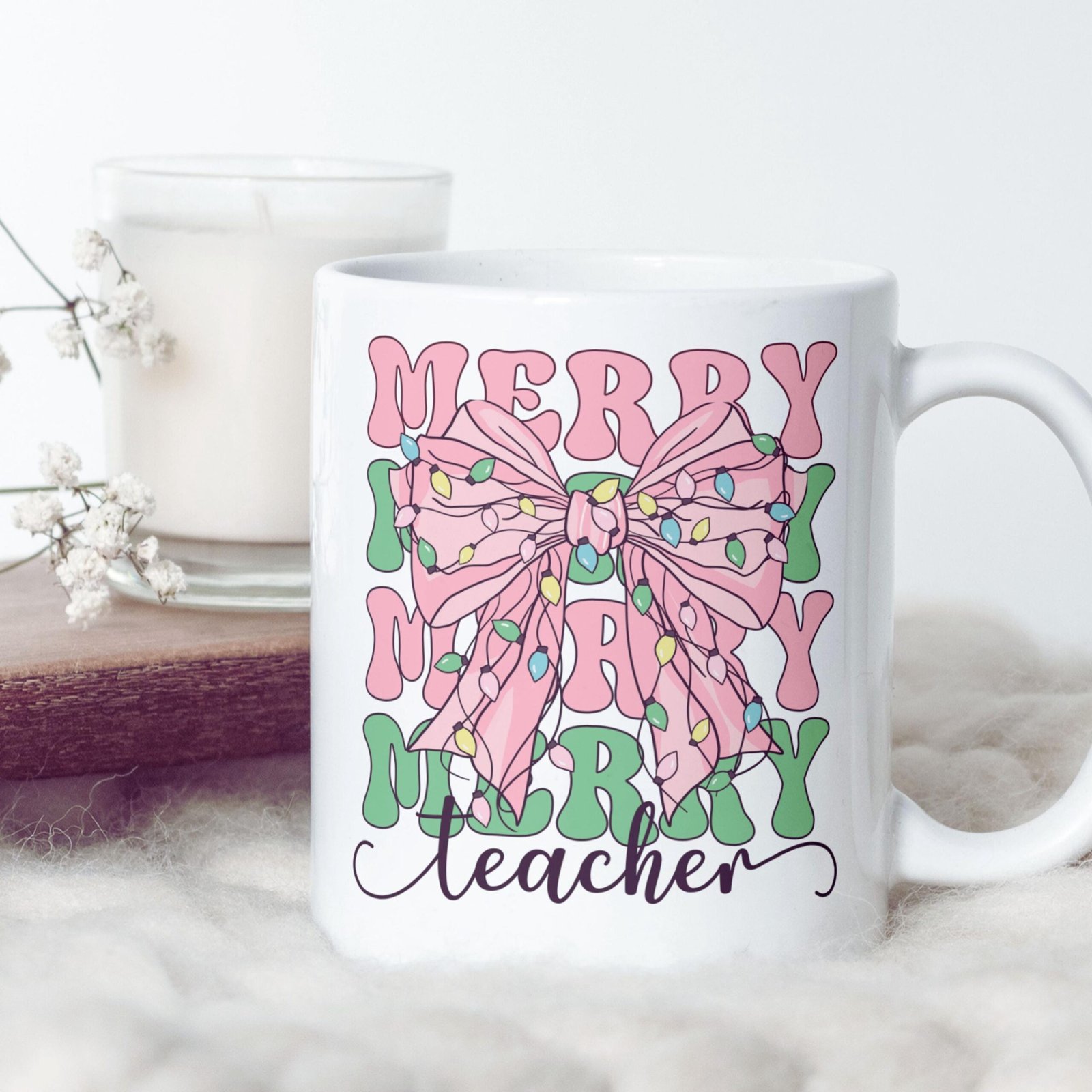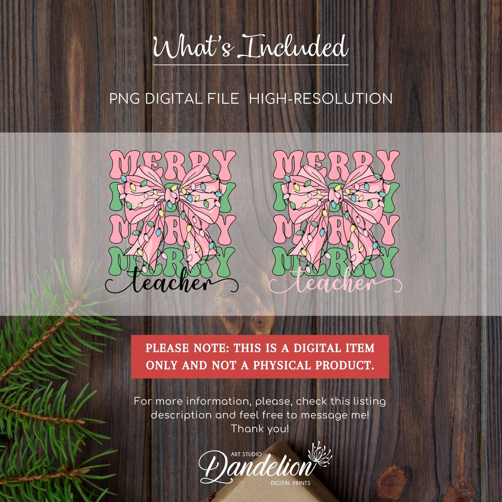 Merry Teacher PNG, Teacher Christmas PNG, Merry Christmas Png, Xmas Teacher Coquette Bow Png, Teacher Sublimation Design Digital Download.