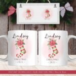 Christmas Mug Sublimation PNG, Christmas Cute Sock PNG Mug, Personalized Christmas Mug, Transfer Mug Press, Wrap Template, Instant Download.