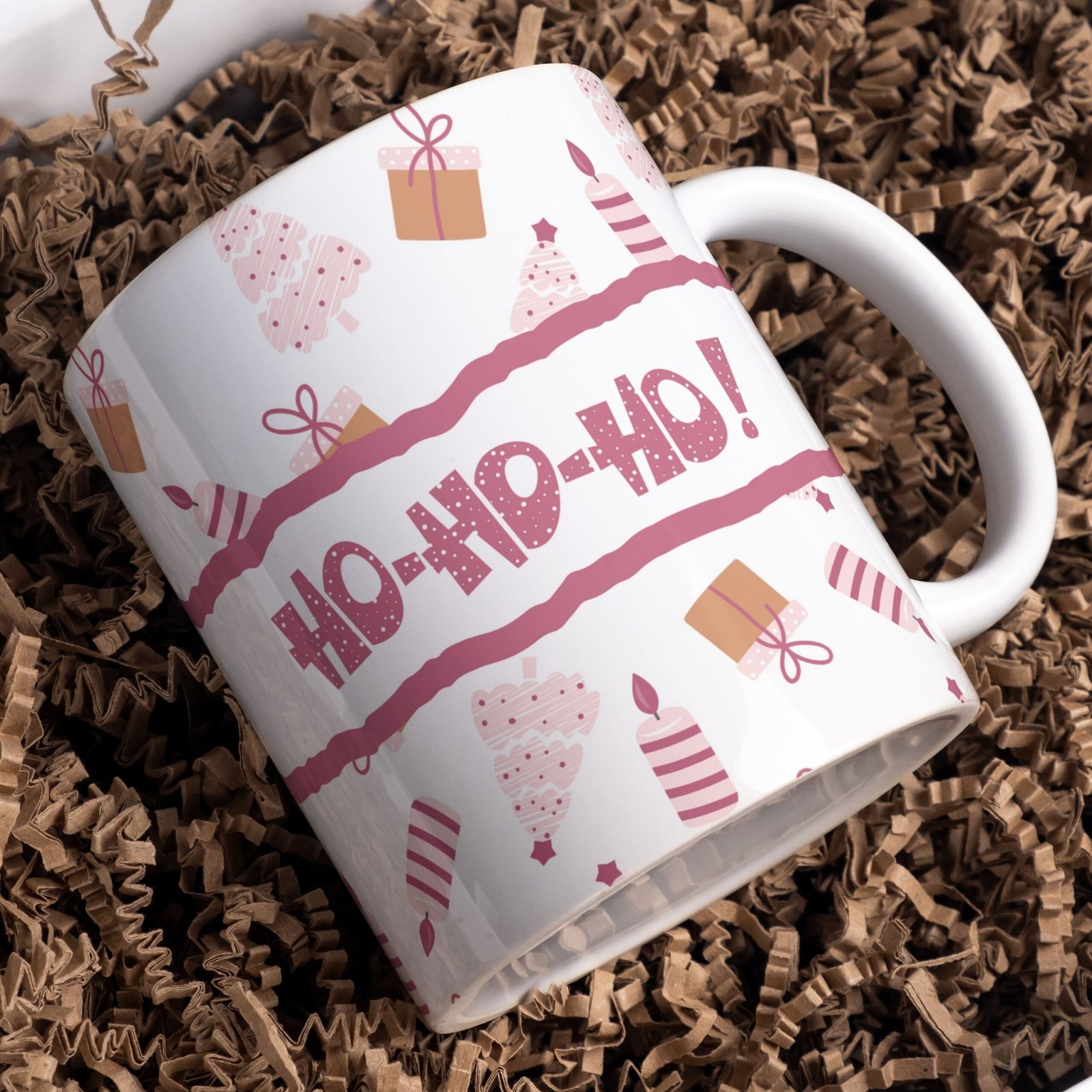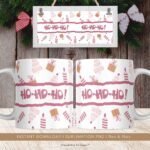 Christmas Mug Sublimation PNG, Cute Christmas Tree Pattern PNG, Ho Ho Ho Christmas Mug, Transfer Mug Press, Wrap Template, Instant Download.