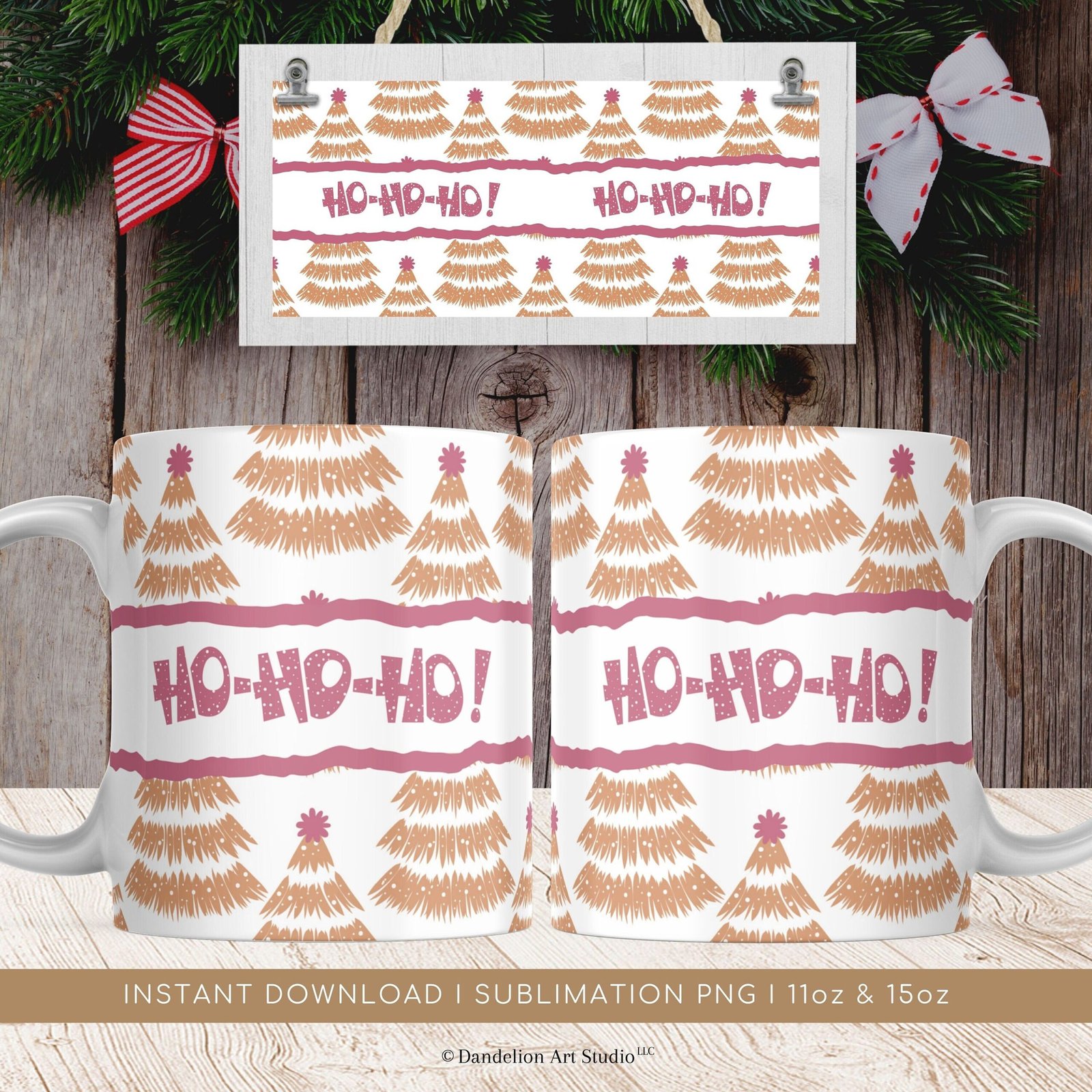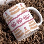 Christmas Mug Sublimation PNG, Cute Christmas Tree Pattern PNG, Ho Ho Ho Christmas Mug, Transfer Mug Press, Wrap Template, Instant Download.