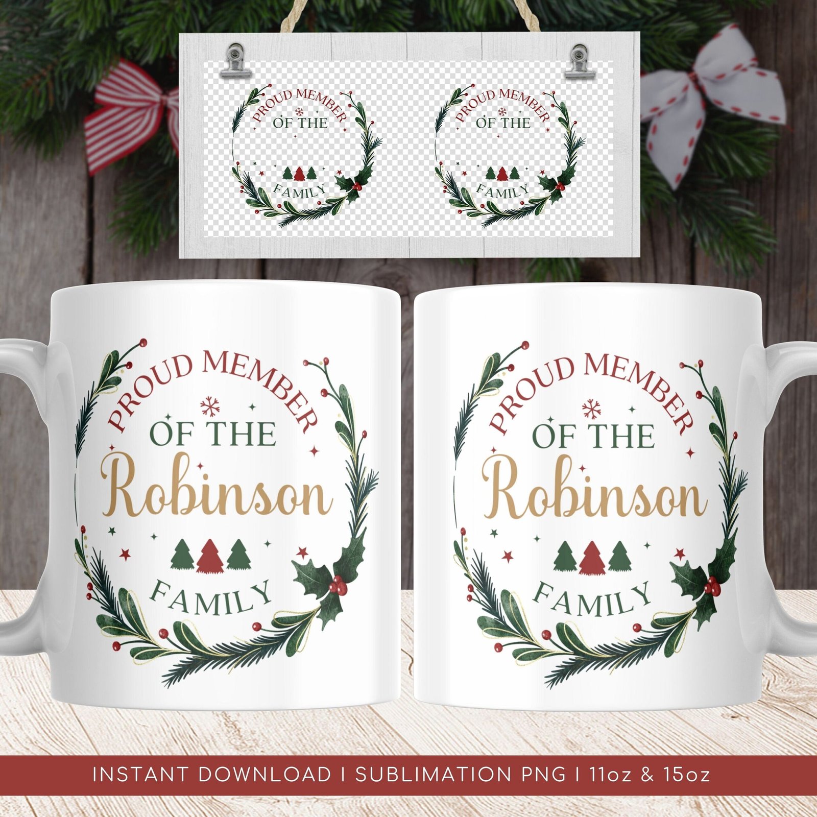 Christmas Personalized Family Mug Design for Sublimation and Transfer. Family Christmas Template Mug PNG, Instant Download, Wrap Mug PNG