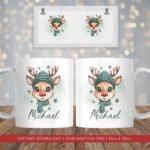 2 reviews for Christmas Reindeer PNG Mug, Xmas Kids Custom Name PNG Mug, Christmas Sublimation Mug, Transfer Wrap Mug Template, Winter Hat Reindeer PNG.