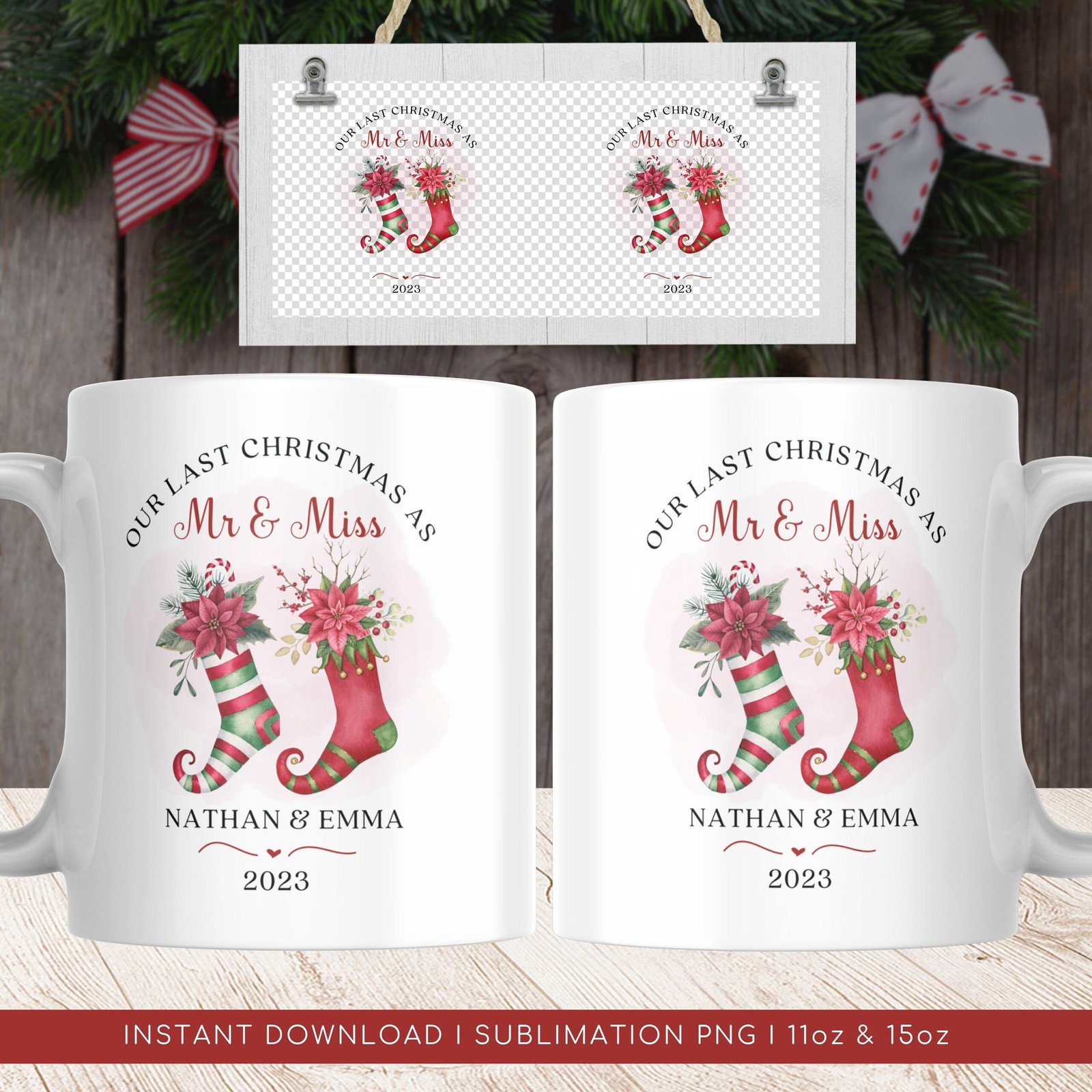 Last Xmas as Mr & Miss PNG Mug, Personalized Xmas Wedding Mug, Couple Christmas Sublimation Mug PNG, Mug Wrap Template, Instant Download.