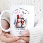 Last Xmas as Mr & Miss PNG Mug, Personalized Xmas Wedding Mug, Snowman Xmas Couple Sublimation Mug PNG, Mug Wrap Template, Instant Download.