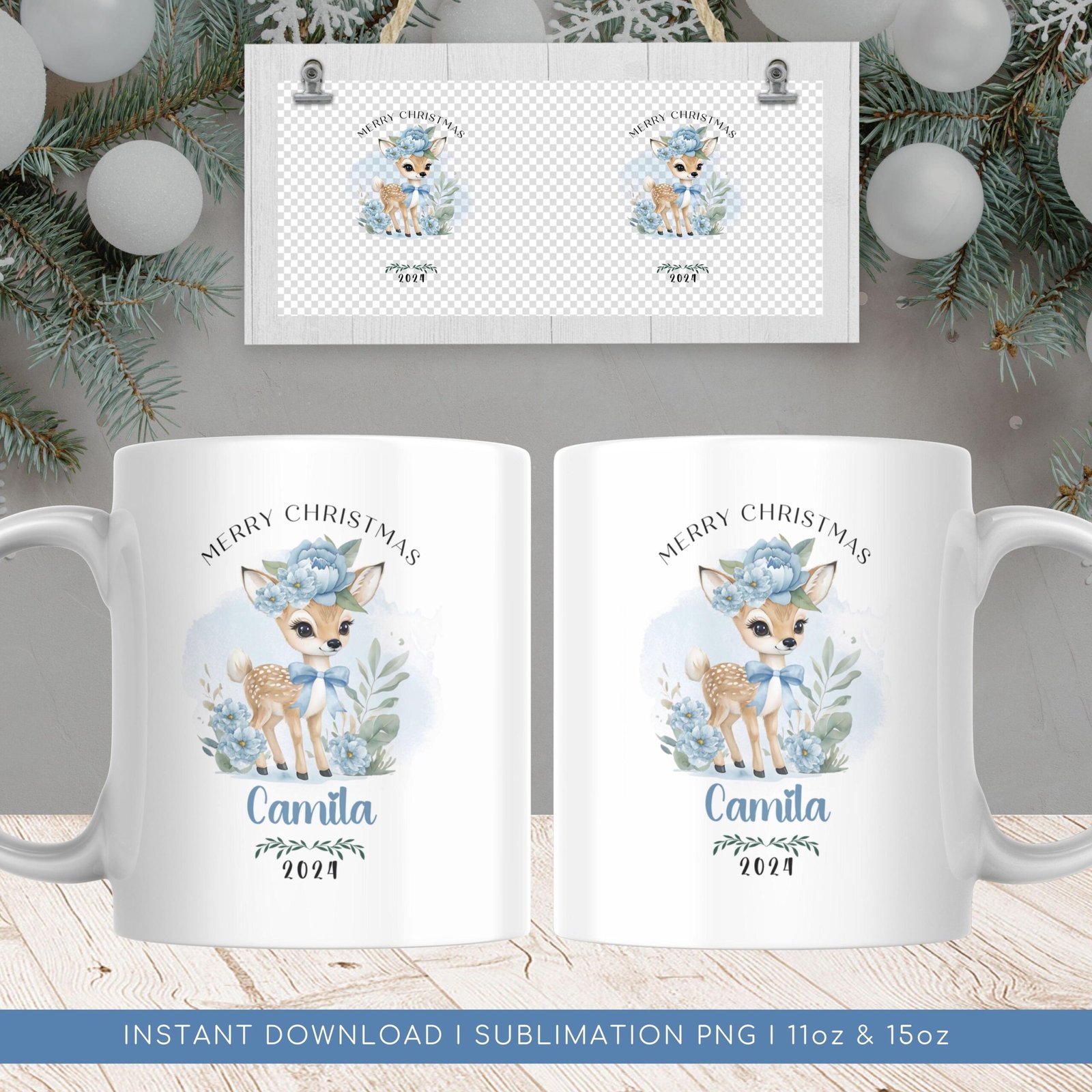 Personalized Christmas Deer Mug PNG, Xmas Custom Name PNG Mug, Christmas Sublimation Mug, Transfer Wrap Mug Template, Instant Download.