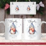 Personalized Christmas Penguin Mug PNG, Christmas Cute Mug, Christmas Sublimation Mug, Transfer Mug Press, Wrap Template, Instant Download.