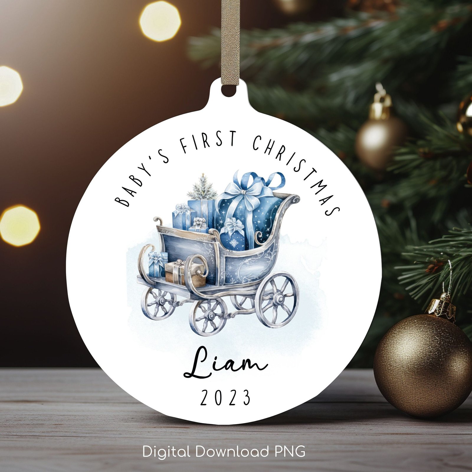 Baby’s First Christmas 2023 Ornament Bundle, Round Ornament Sublimation PNG, Instant Digital Download, Personalized Baby Ornament Designs.