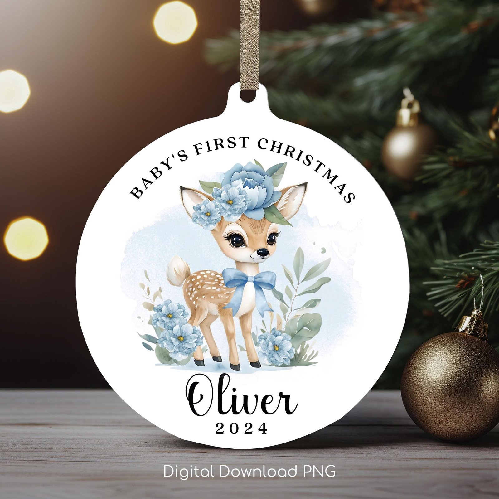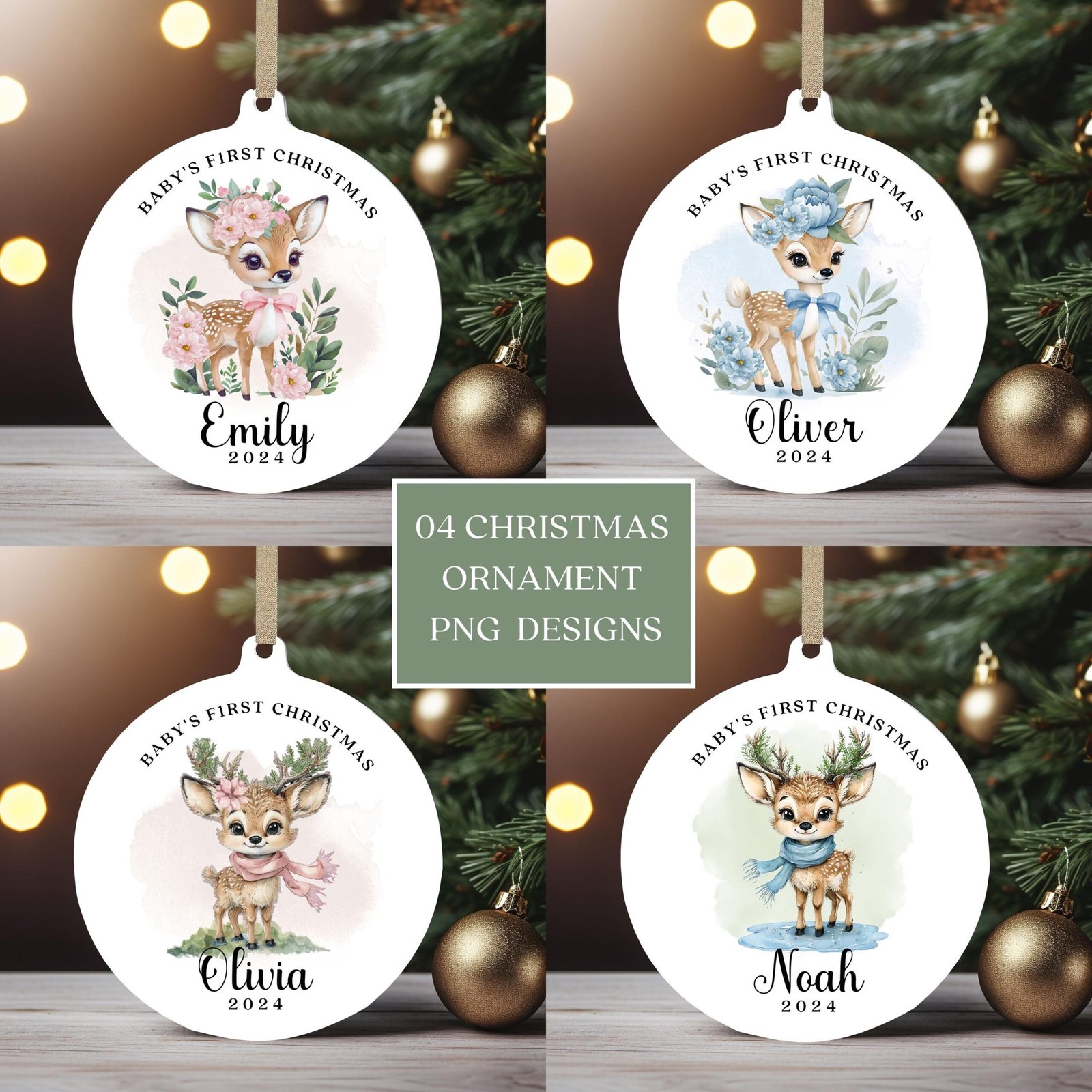 Baby’s First Christmas 2024 Ornament PNG Bundle, Round Ornament Sublimation, Custom Xmas Bauble PNG, Personalized Baby Ornament Designs.