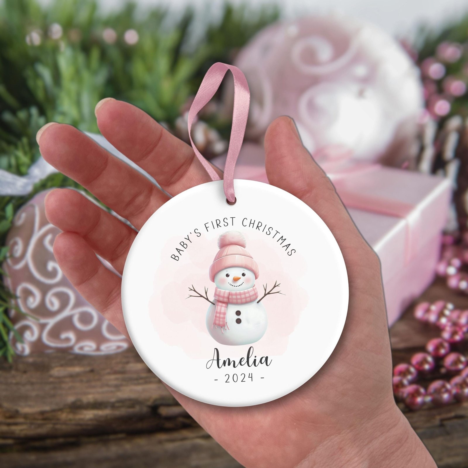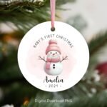 Baby’s First Christmas Ornament PNG, Personalized Xmas Keepsake Sublimation, Baby Snowman Christmas Round Ornament PNG, Xmas Custom Bauble.