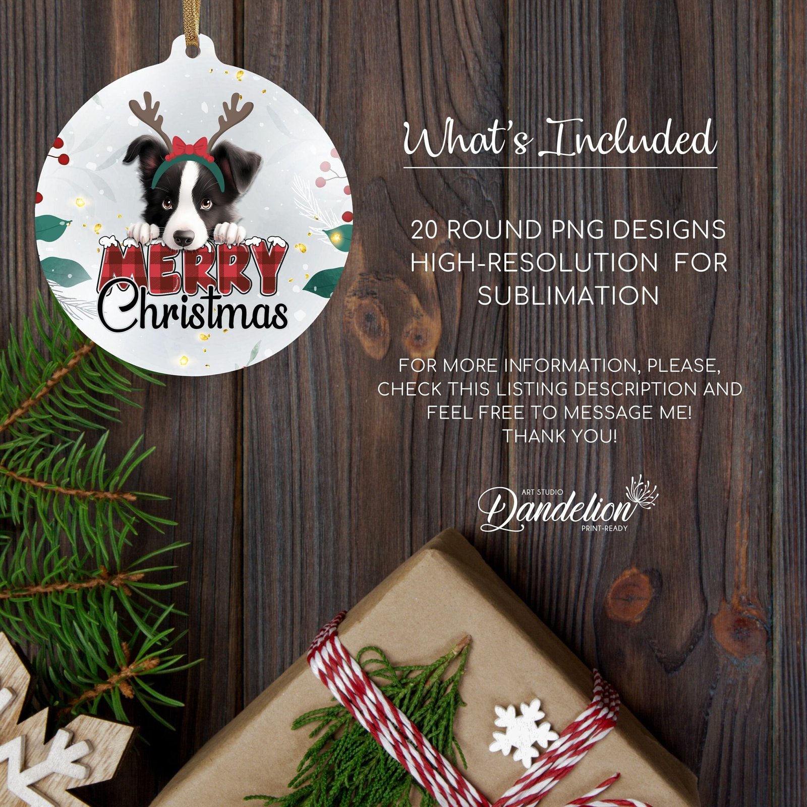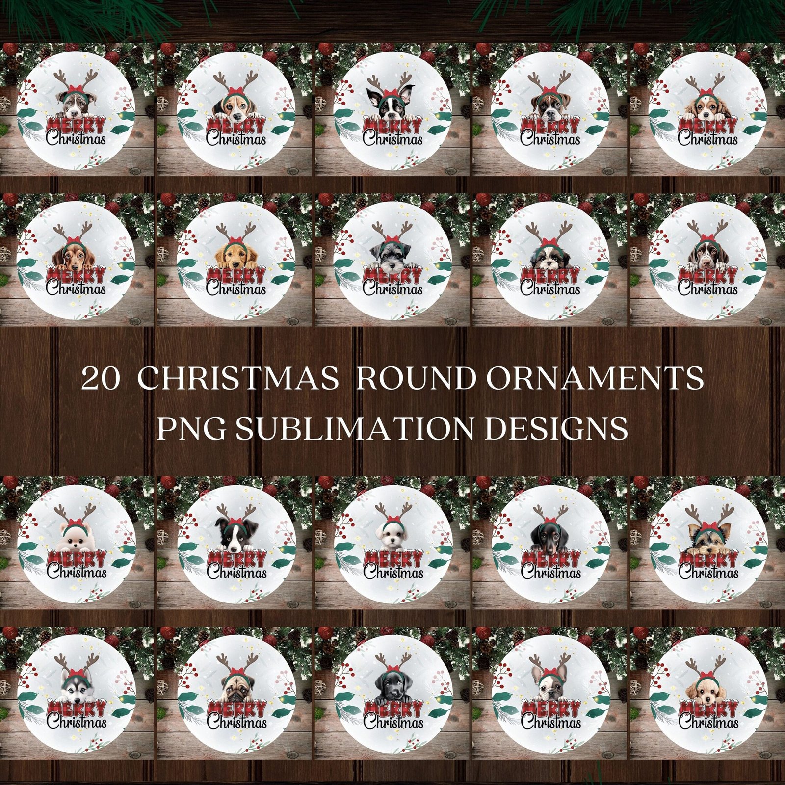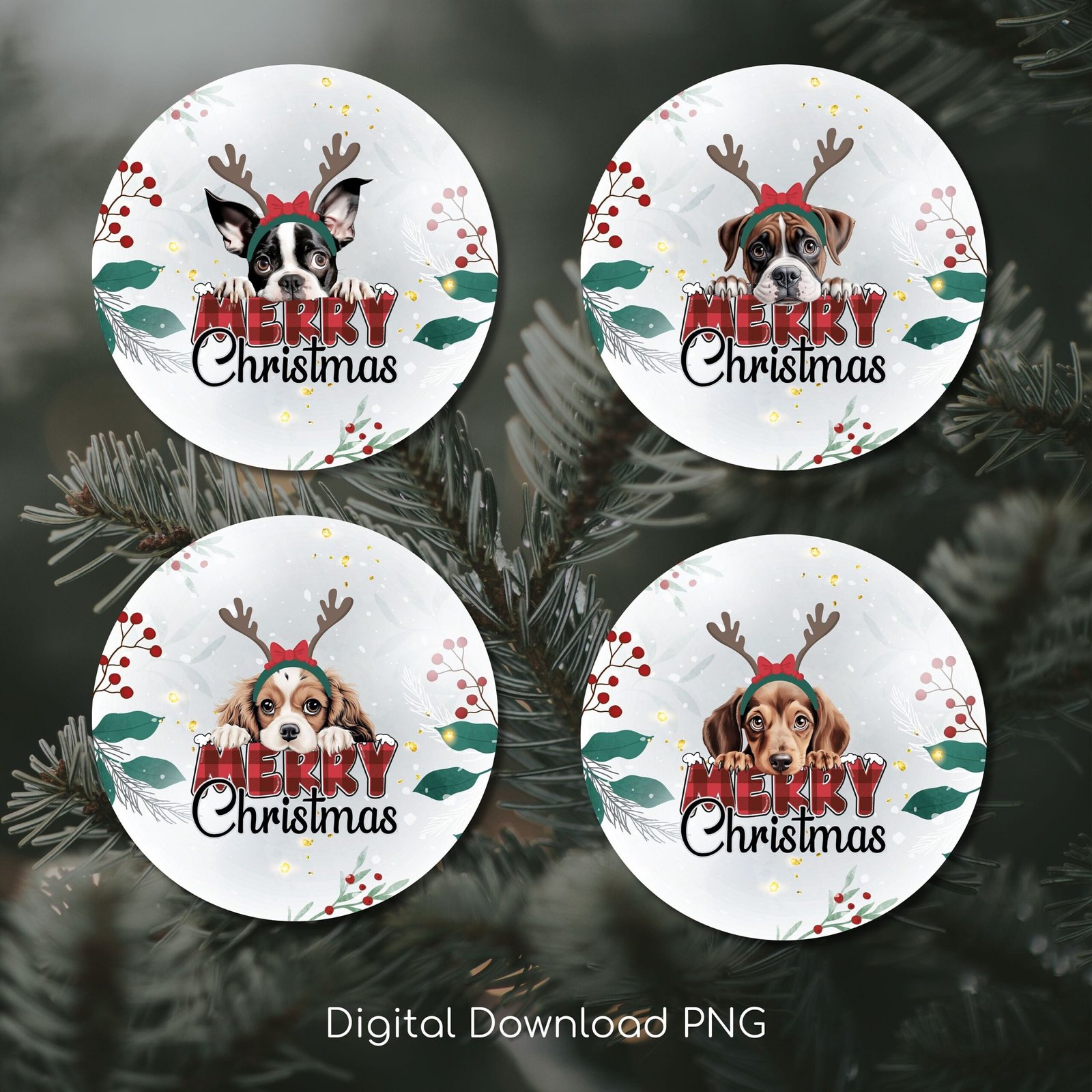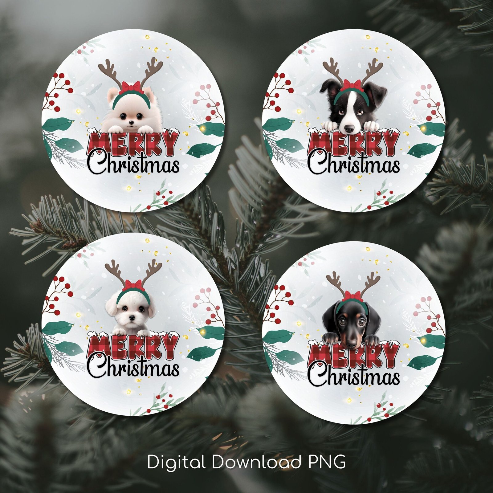 Bundle Dog Christmas PNG, Christmas Round Ornament PNG Sublimation Template, Dog Merry Christmas Ornaments, Round Hanging Digital Download.