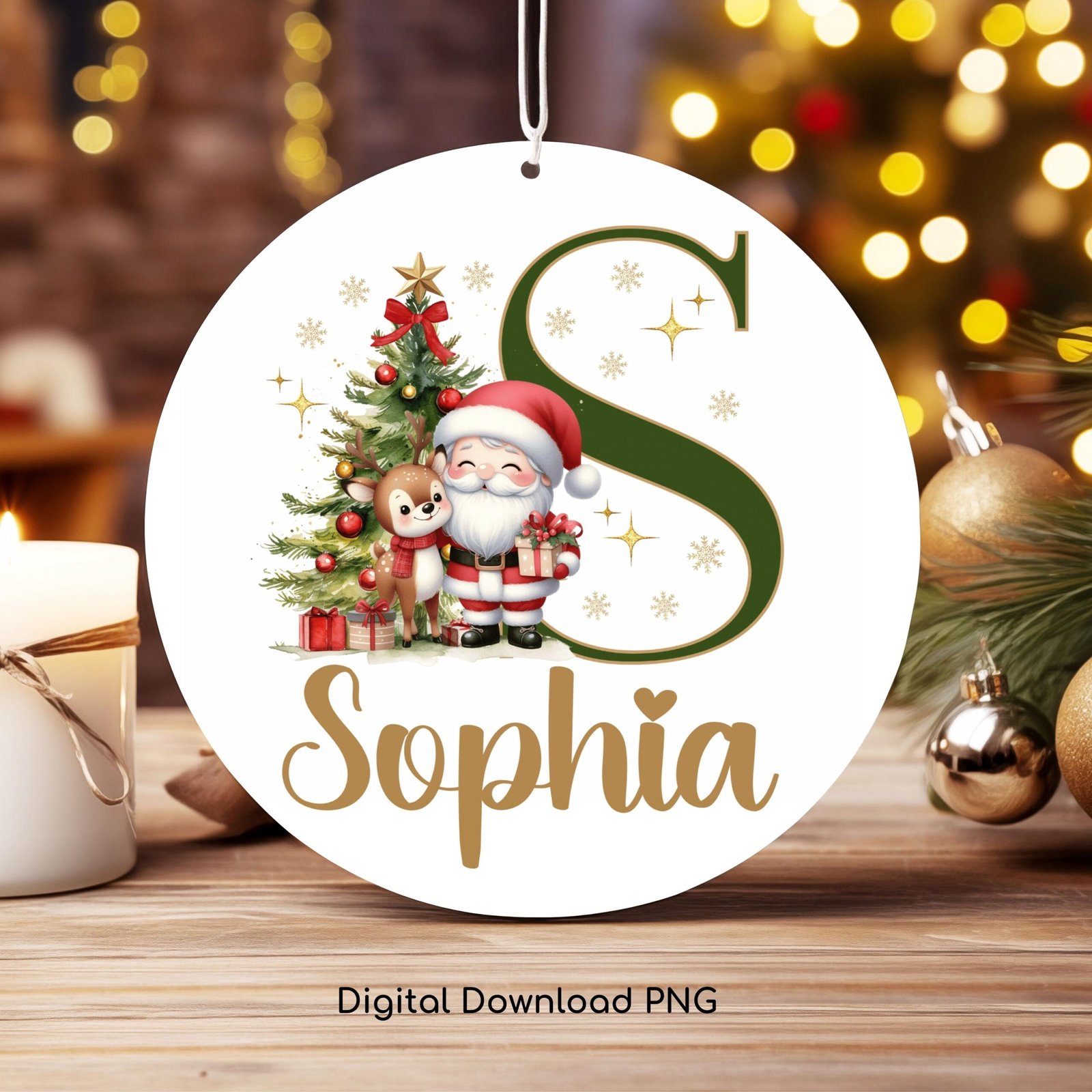 Christmas Alphabet PNG, Santa Initial Letter PNG, Xmas Ornament PNG Design, Custom Name Christmas Sublimation, Kids Printable Xmas Letters.