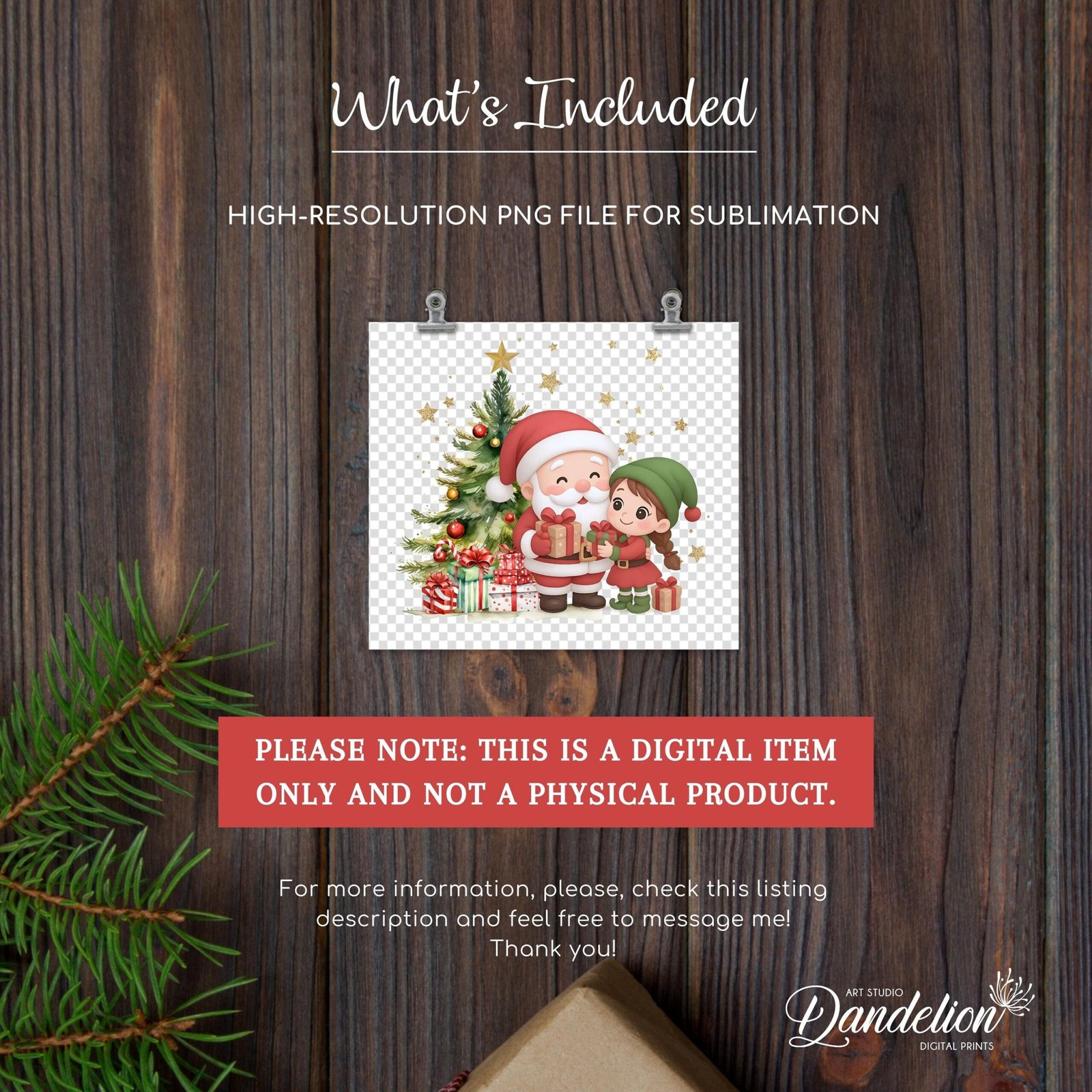 Christmas PNG File, Santa Printable PNG Design, Personalized Round Ornament PNG, Kids Custom Name Xmas Santa Elf Keepsake, Digital Download