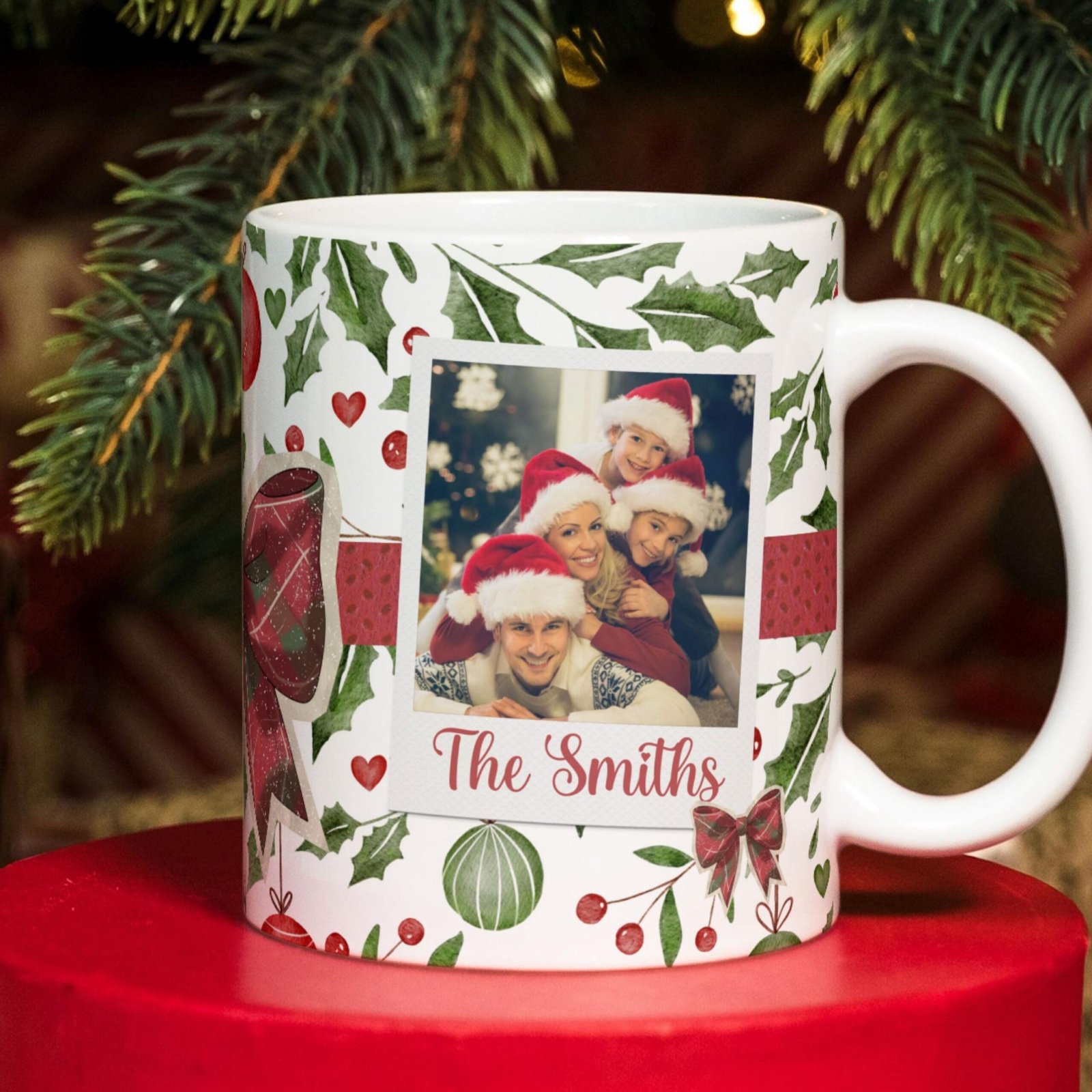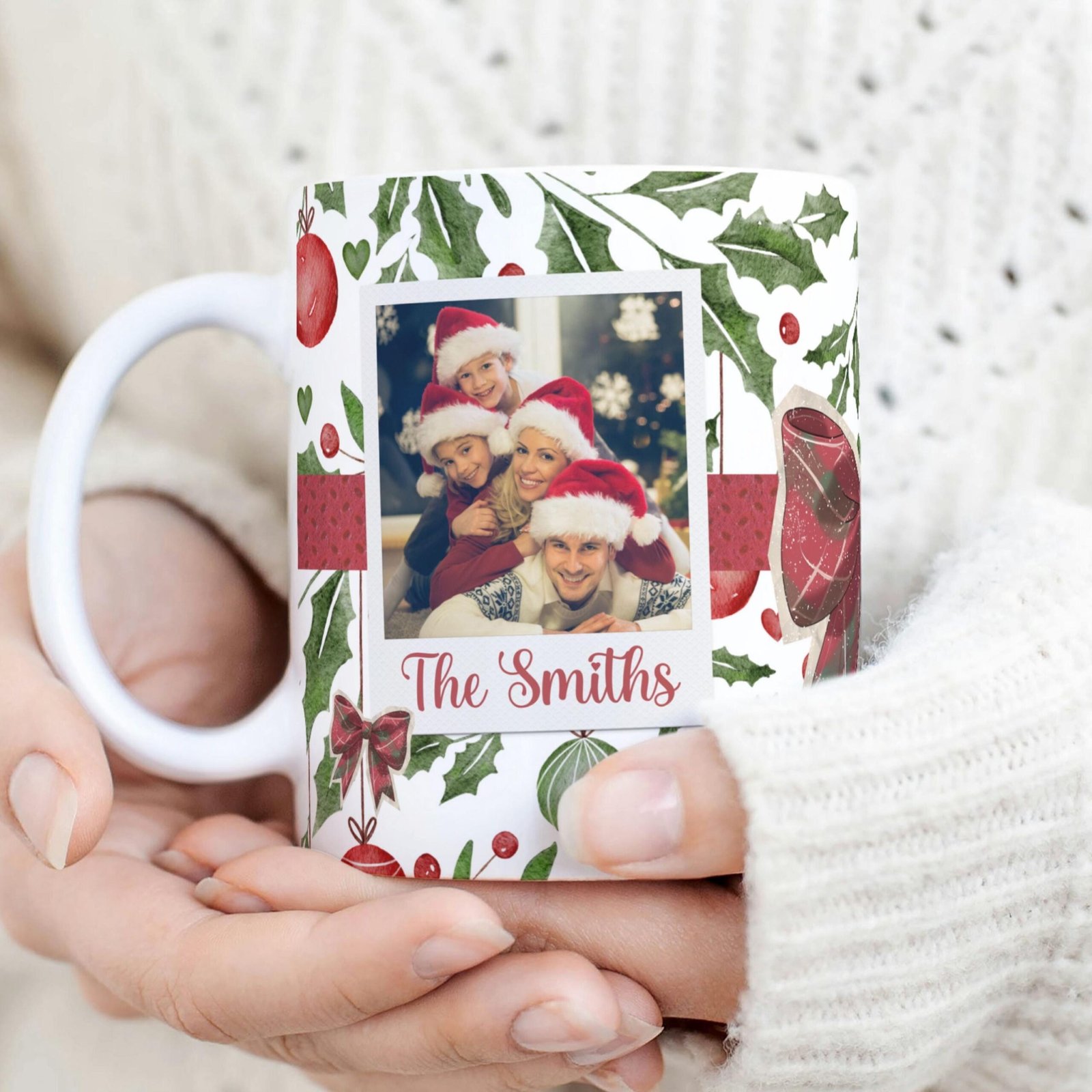 Christmas PNG Mug Sublimation, Custom Christmas Photo Mug Design, Transfer Xmas Mug Template, Custom Family Name Mug Wrap, Digital Download