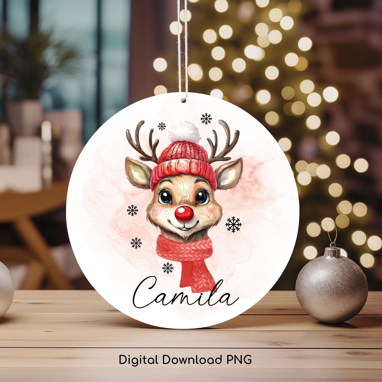 Christmas PNG Personalized Ornament, Winter Reindeer PNG, Christmas Keepsake Sublimation, Kids Custom Name PNG Design, Digital Download.