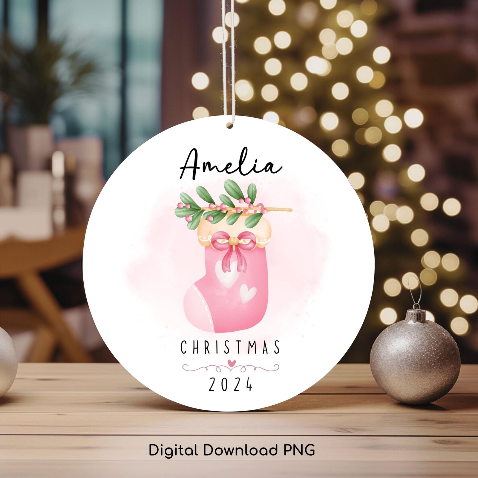 Christmas PNG Personalized Ornament, Xmas Stocking PNG, Christmas Keepsake Sublimation Template, Kids Custom Name PNG Design, Xmas Socks Png