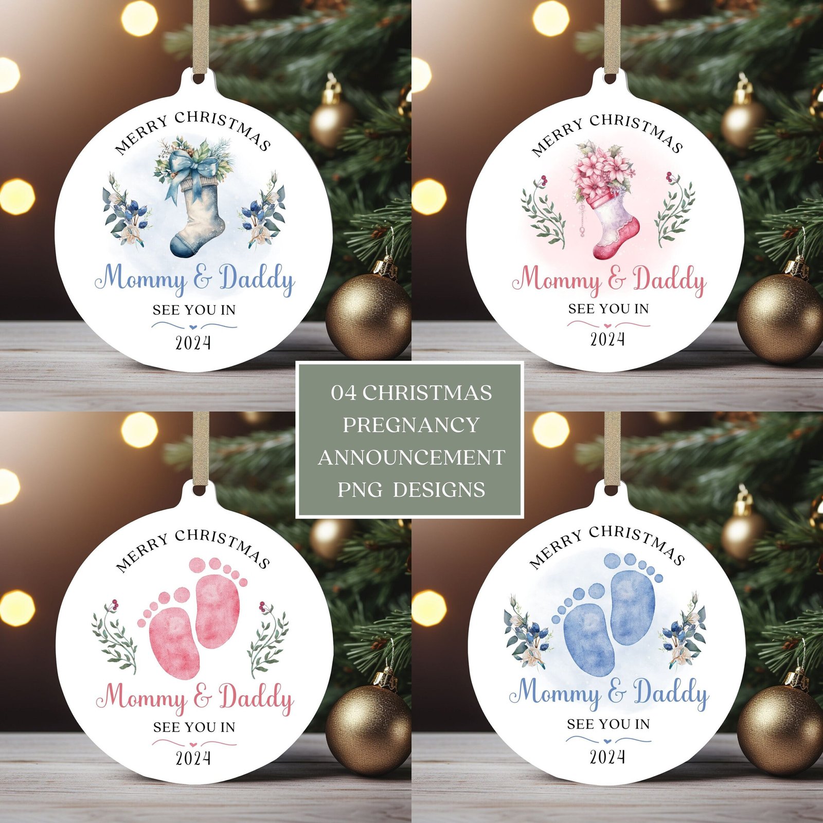 Christmas Pregnancy Announcement Ornament PNG Bundle, Baby Announcement Sublimation Ornament, Instant Download, PNG Wrap Transfers Design.