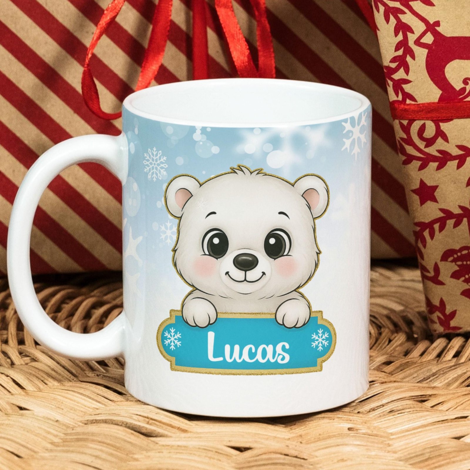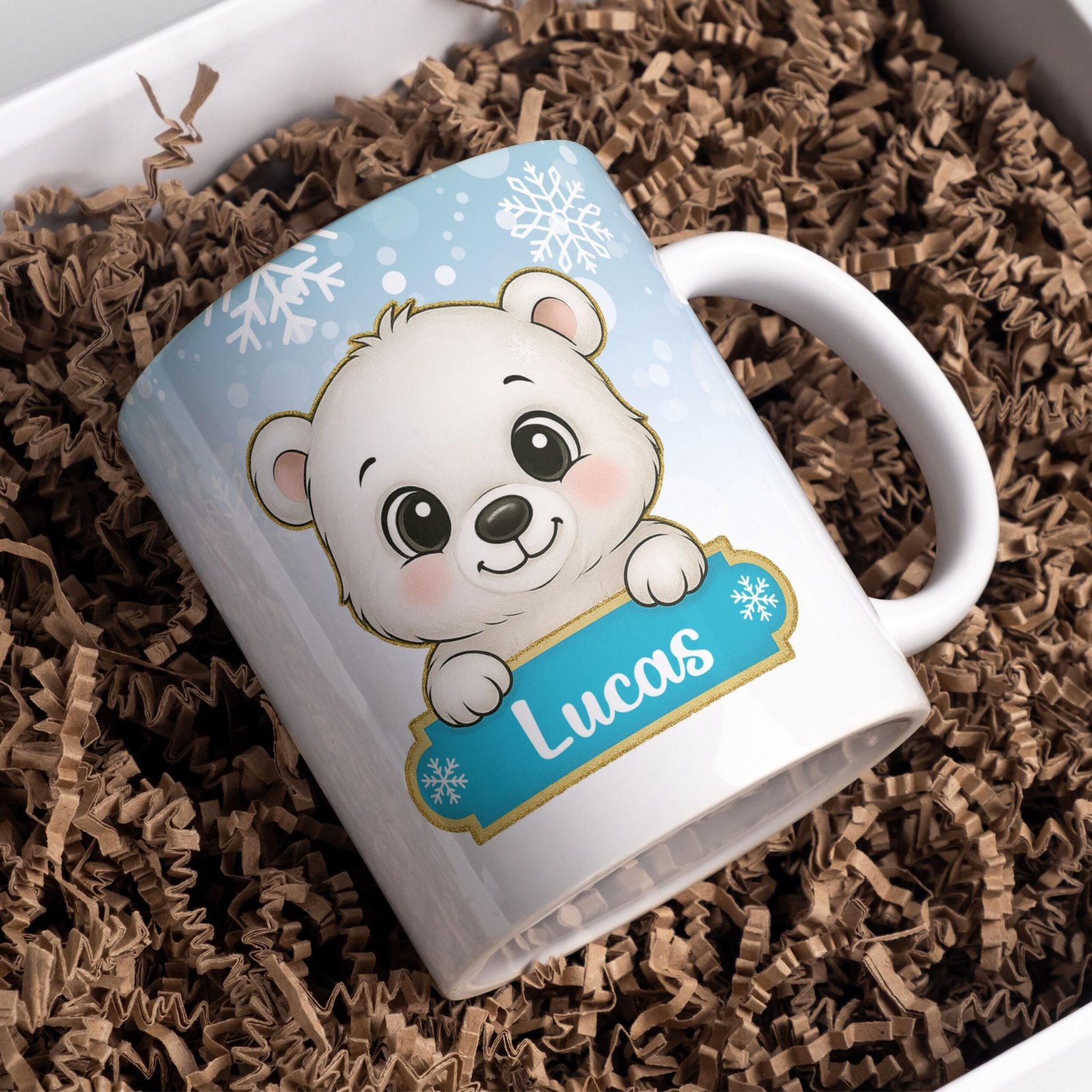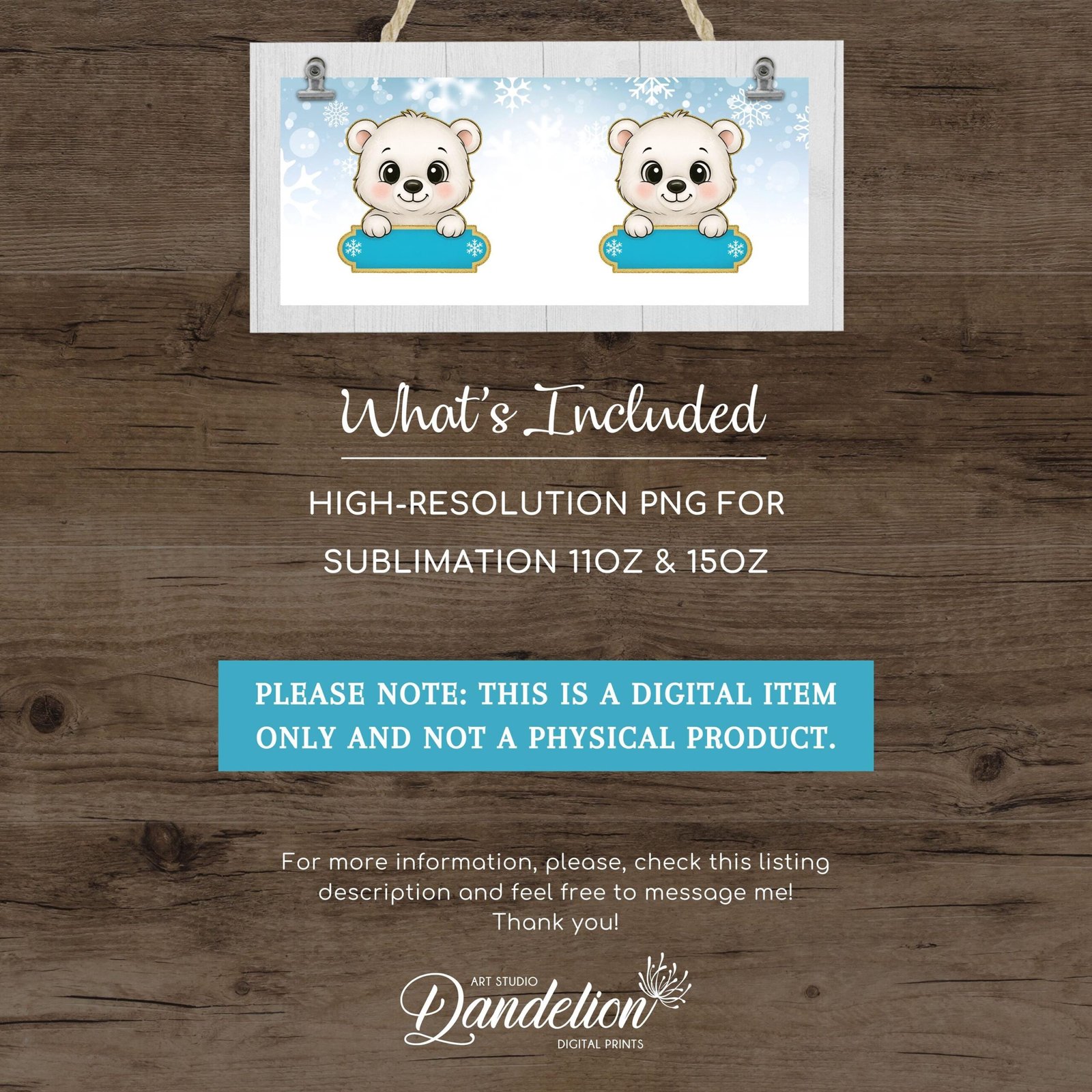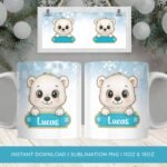 Digital Design PNG Mug, Xmas Kids Custom Name PNG Mug, Christmas Cute Polar Bear Sublimation Mug, Transfer Wrap Mug Template, Blue Xmas PNG.