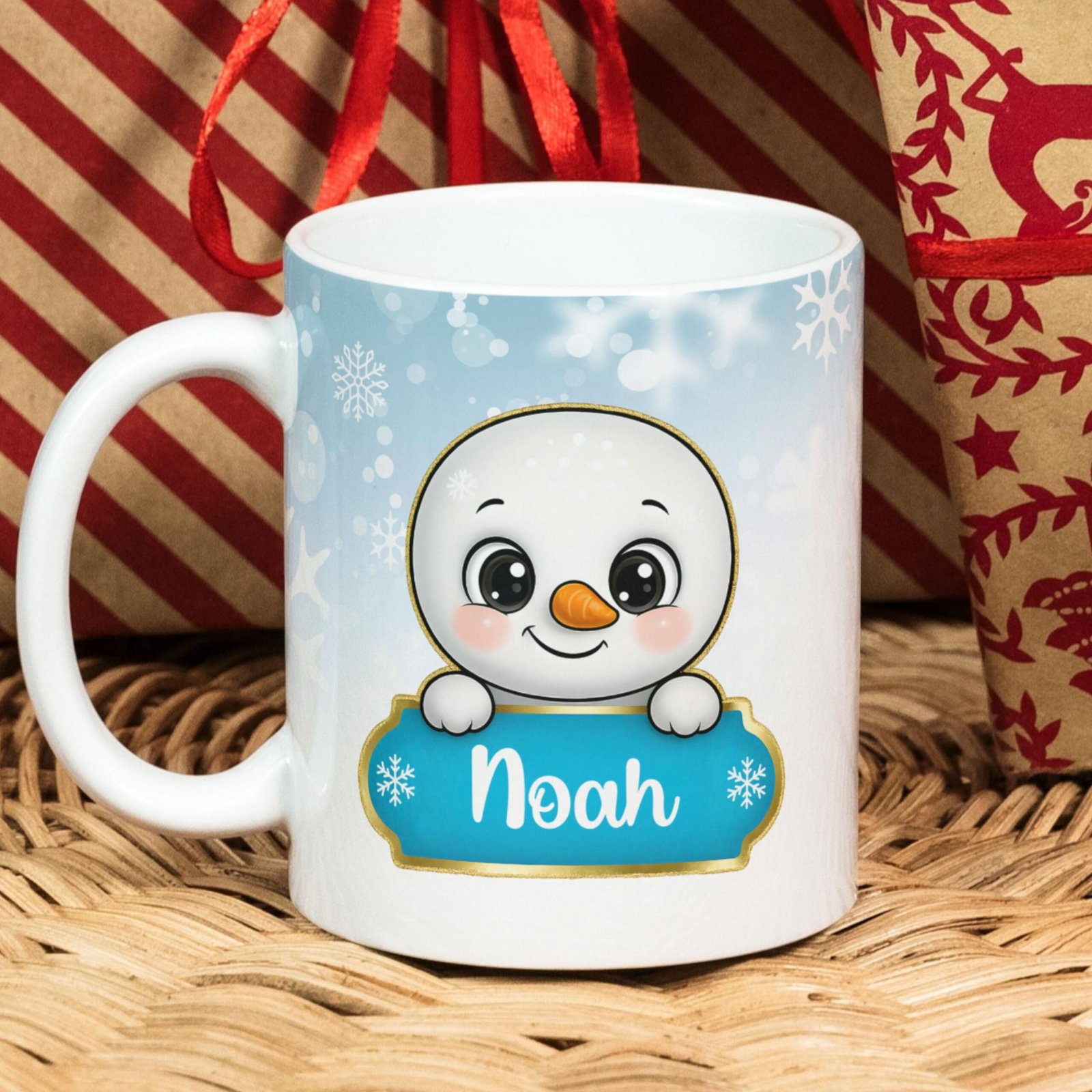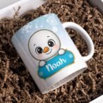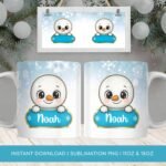 Digital Design PNG Mug, Xmas Kids Custom Name PNG Mug, Christmas Cute Snowman Sublimation Mug, Transfer Wrap Mug Template, Blue Xmas PNG.