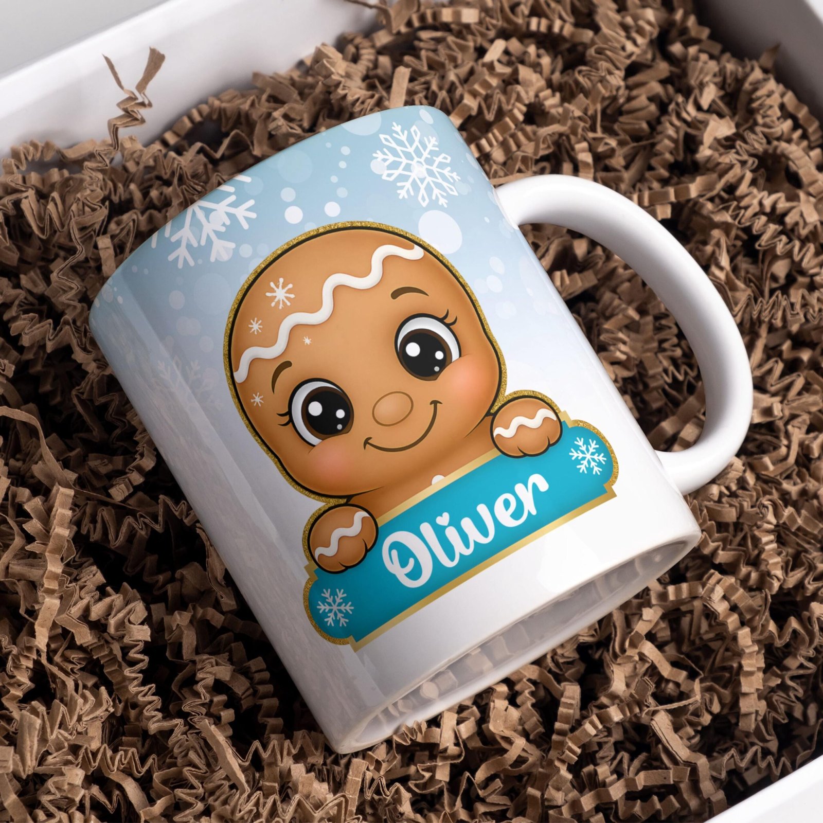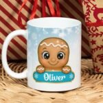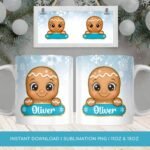 Digital Design PNG Mug, Xmas Kids Custom Name PNG Mug, Christmas Gingerbread Man Sublimation Mug, Transfer Wrap Mug Template, Blue Xmas PNG.