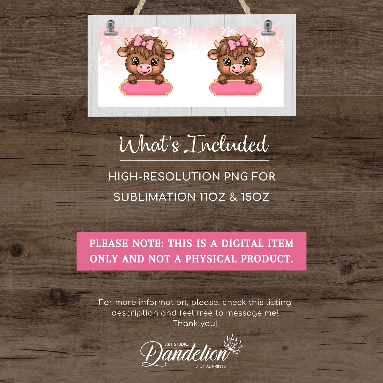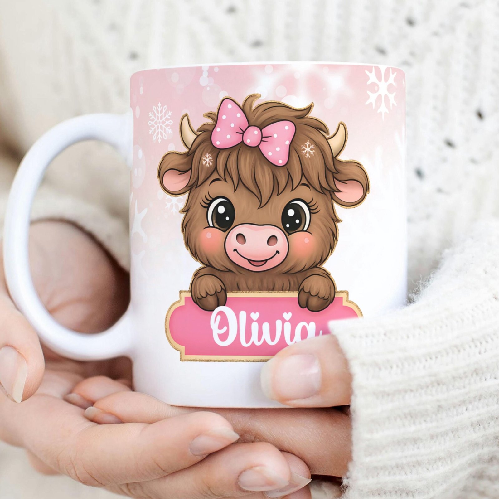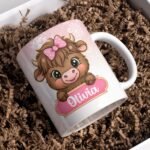 Digital Design PNG Mug, Xmas Kids Custom Name PNG Mug, Christmas Sublimation Mug, Transfer Wrap Mug Template, Pink Xmas Highland Cow PNG.