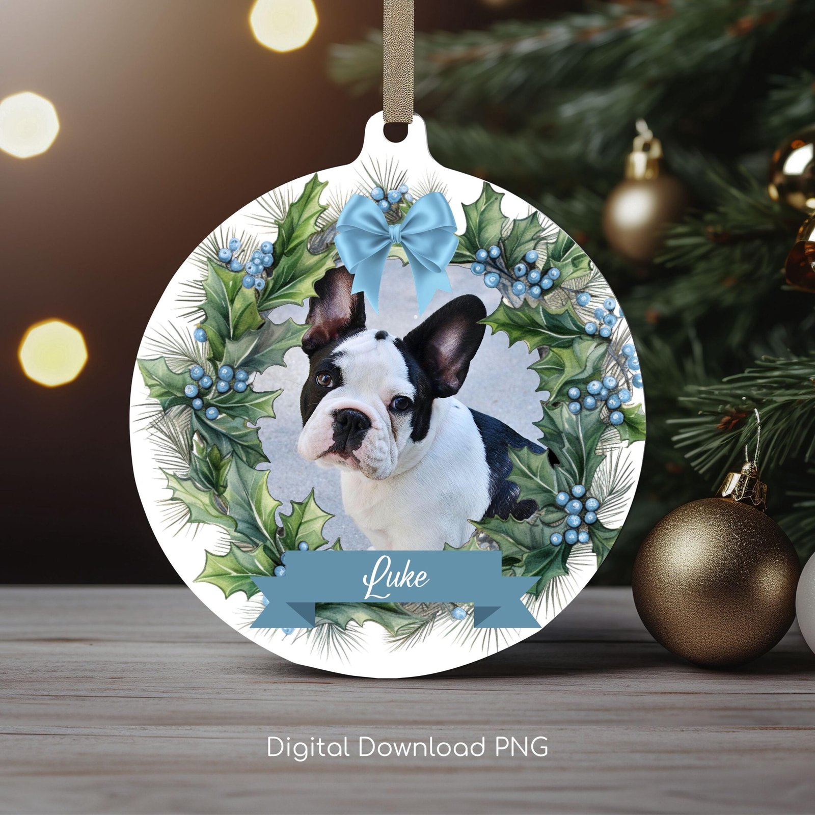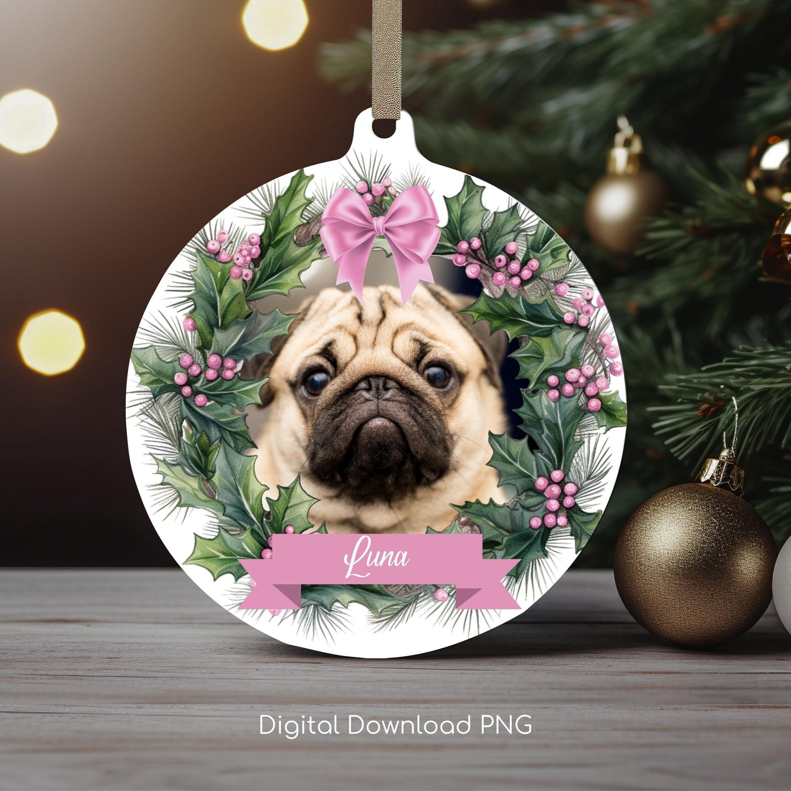 DIY Personalized Pet Christmas Ornament PNG Bundle, Xmas Round Ornament, Custom Dog Photo Christmas Sublimation Template, Instant Download.