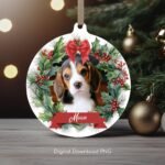DIY Personalized Pet Christmas Ornament PNG Bundle, Xmas Round Ornament, Custom Dog Photo Christmas Sublimation Template, Instant Download.