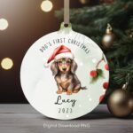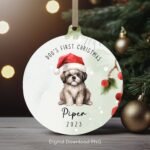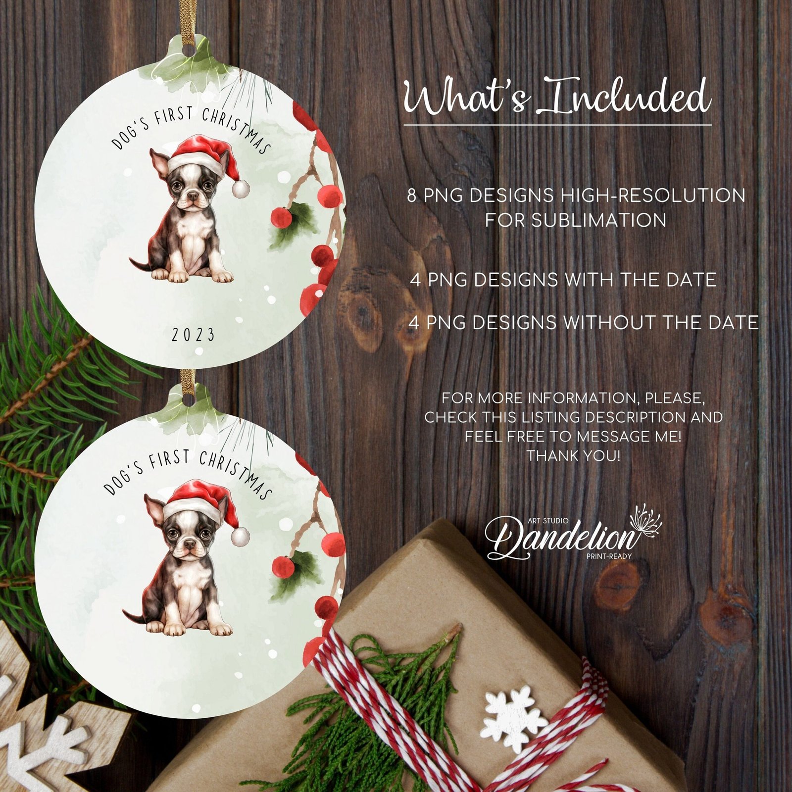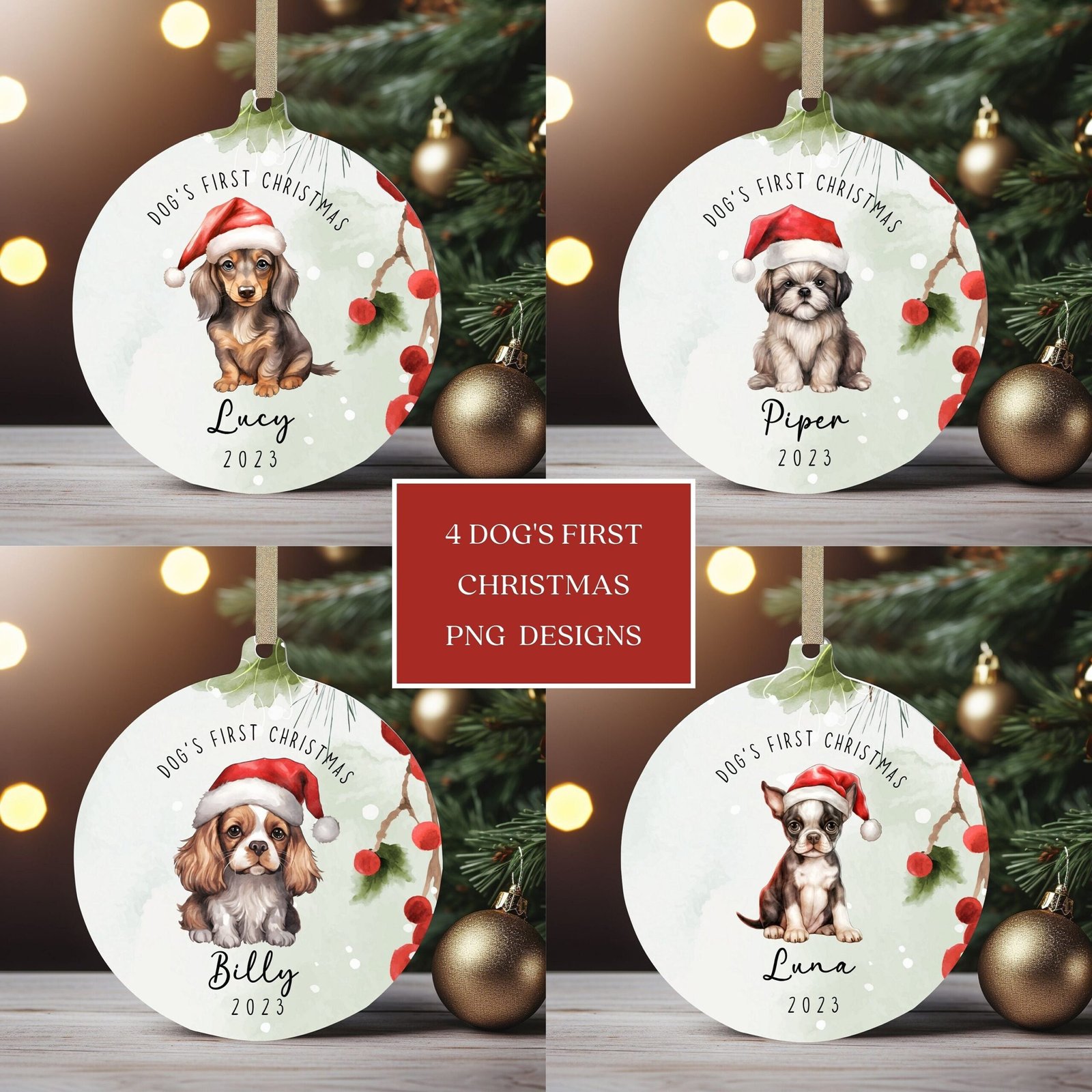 Dog’s 1st Christmas Personalized Ornament PNG Bundle, Instant Download, Sublimation Christmas Puppy Dog Ornament, PNG Wrap Transfers Design.
