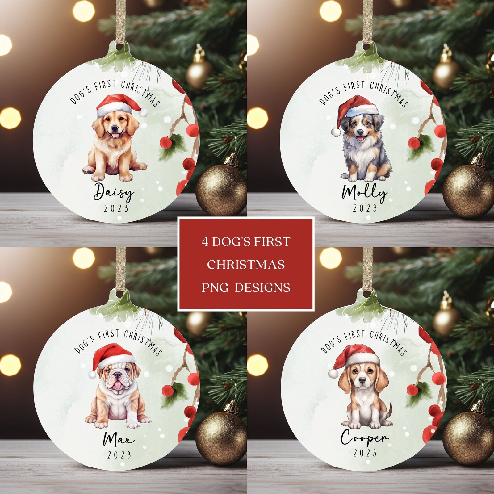Dog’s 1st Christmas Personalized Ornament PNG Bundle, Instant Download, Sublimation Christmas Puppy Dog Ornament, PNG Wrap Transfers Design.