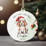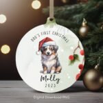 Dog’s 1st Christmas Personalized Ornament PNG Bundle, Instant Download, Sublimation Christmas Puppy Dog Ornament, PNG Wrap Transfers Design.