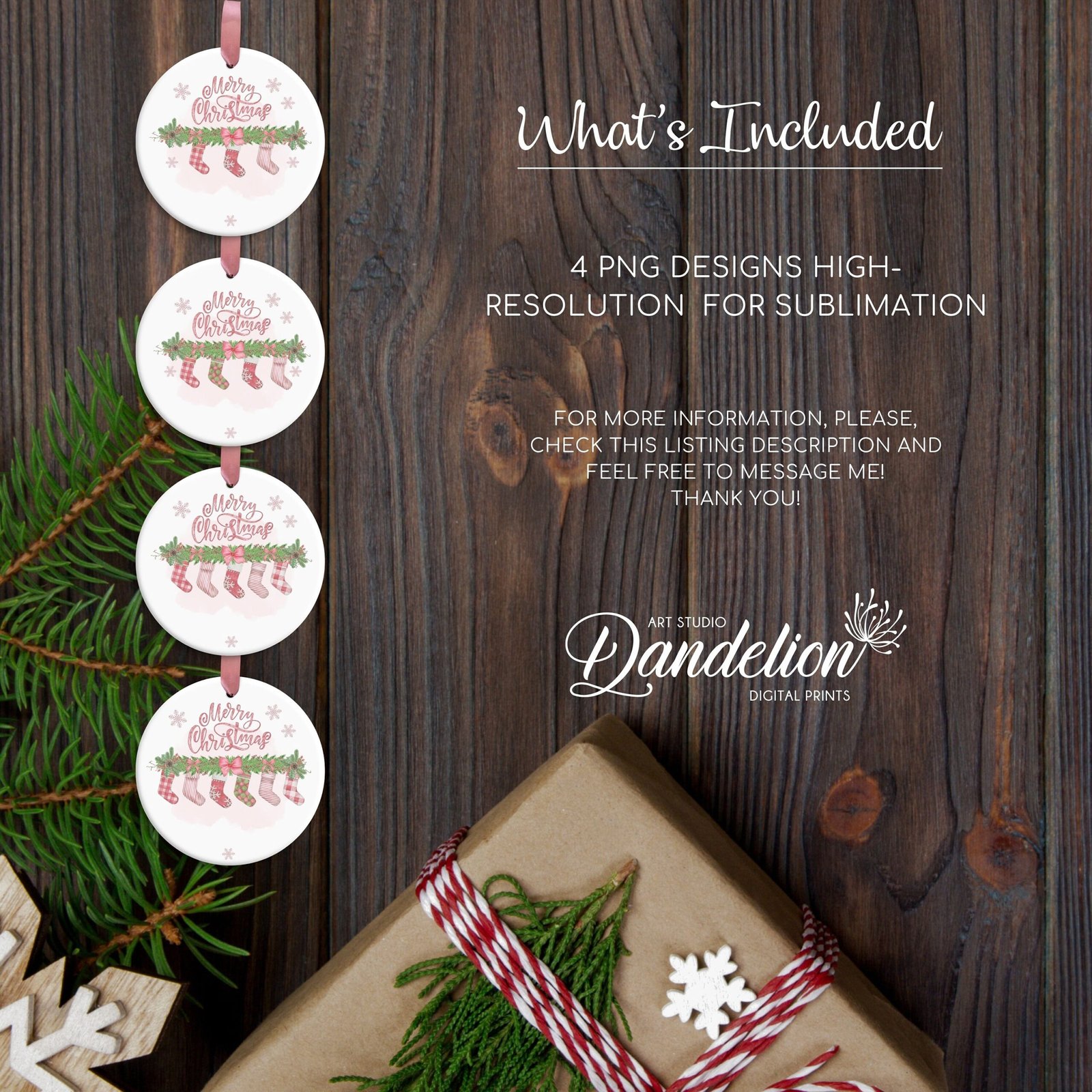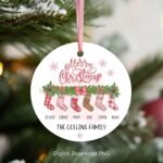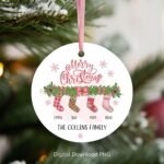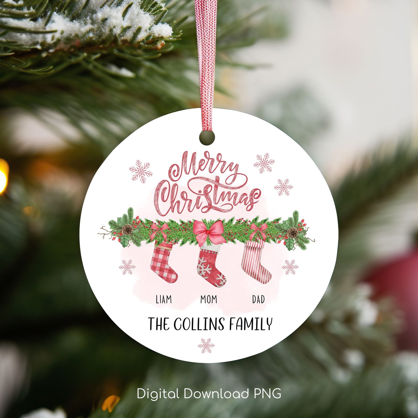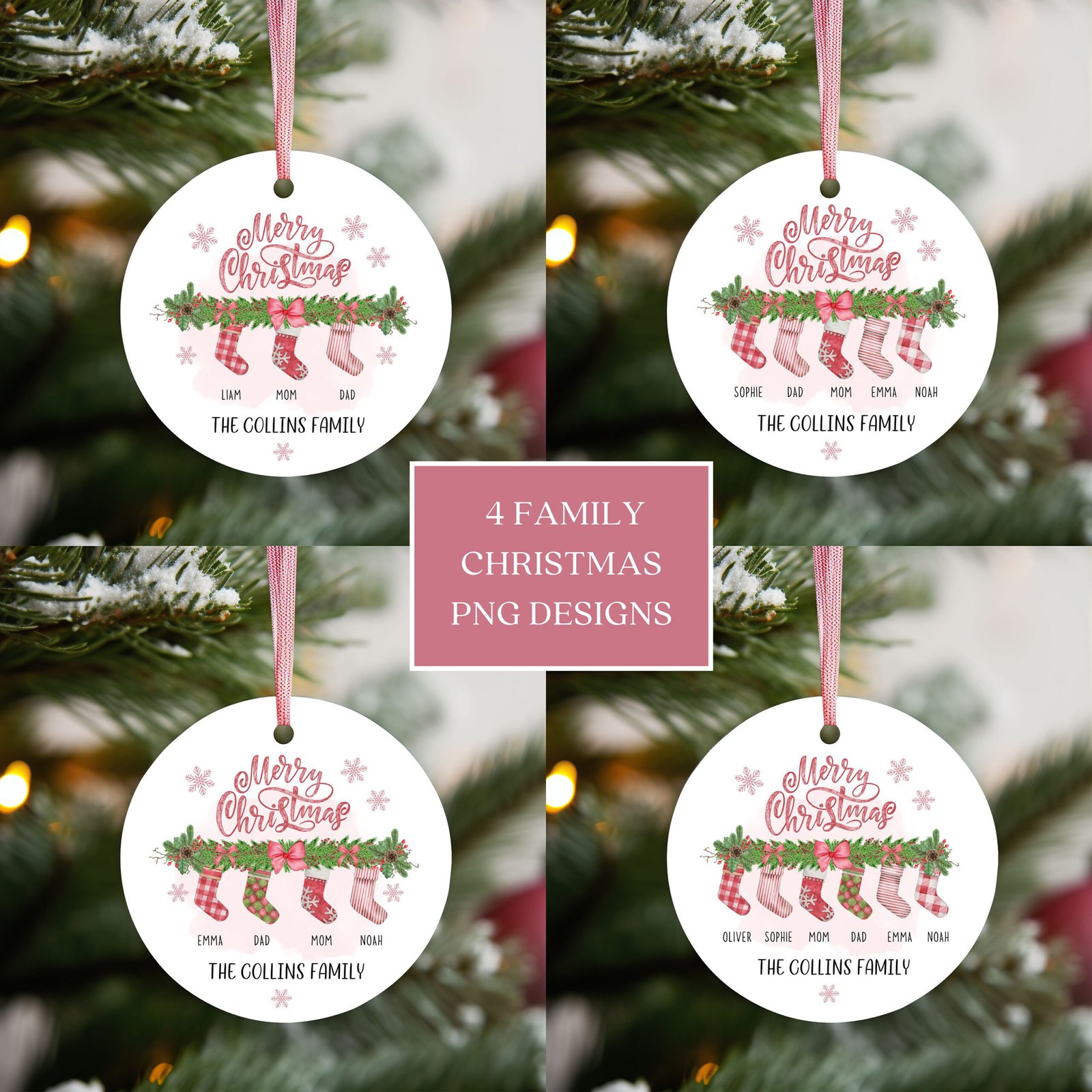Family Socks Christmas Ornament Bundle, Round Xmas Ornament Sublimation, Custom Christmas Stocking PNG, Personalized Family Ornament Designs
