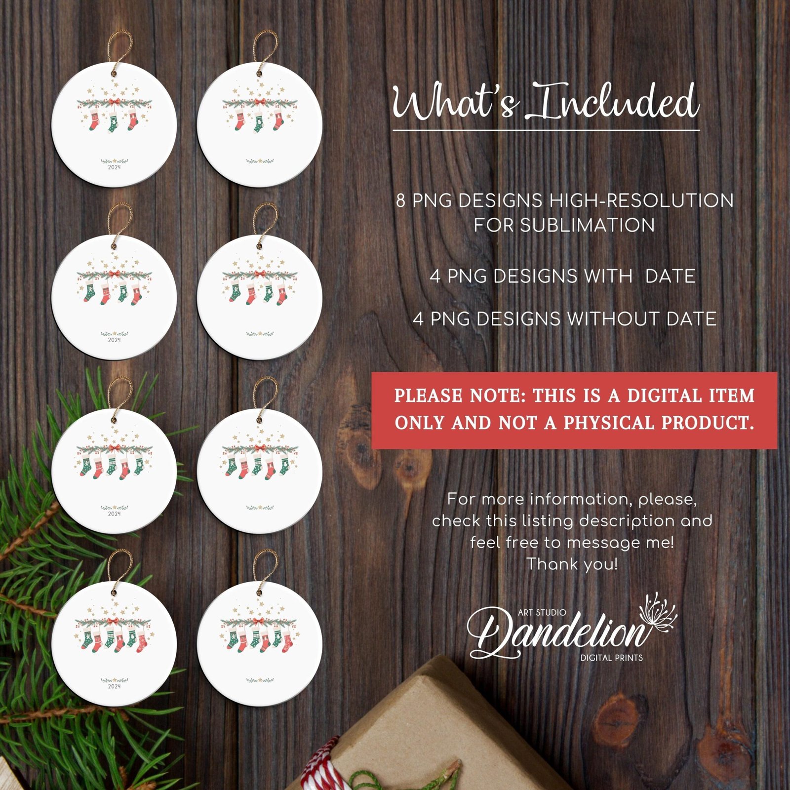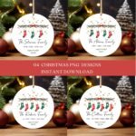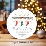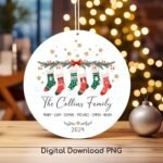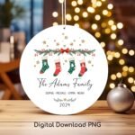 Family Stocking Christmas PNG Bundle, Xmas Socks Round Ornament Sublimation PNG, Instant Download, DIY Personalized Family Ornament Designs