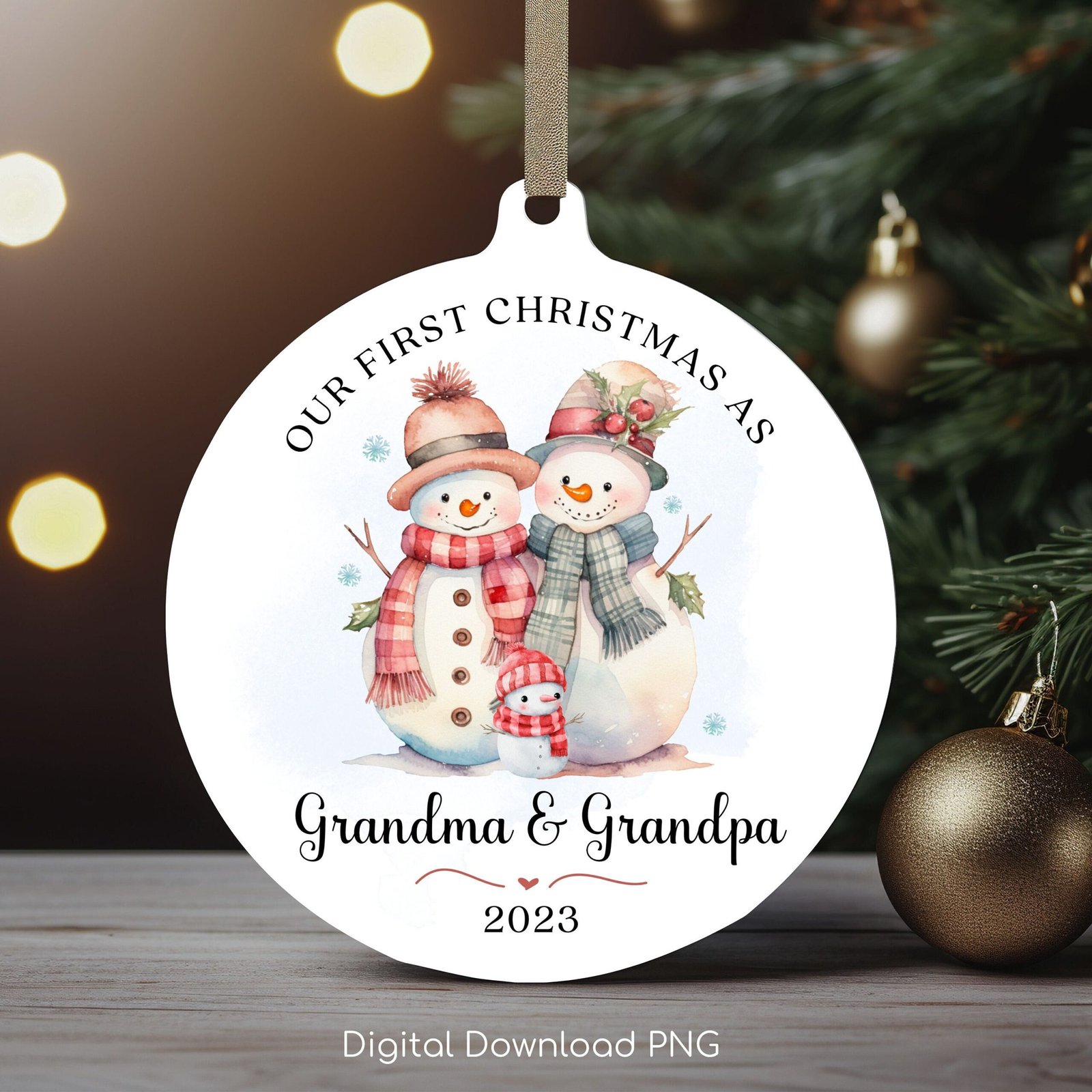 First Christmas as Grandma & Grandpa Ornament, Christmas Round Ornament, Snowman Family Xmas Sublimation Ornament PNG, Instant Download.