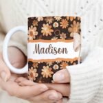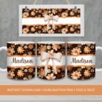 Floral Fall Mug Wrap, Custom Name Mug Sublimation, Coquette Bow PNG Mug, Thanksgiving Mug Transfers 11oz & 15oz, Autumn Flowers PNG Mug.