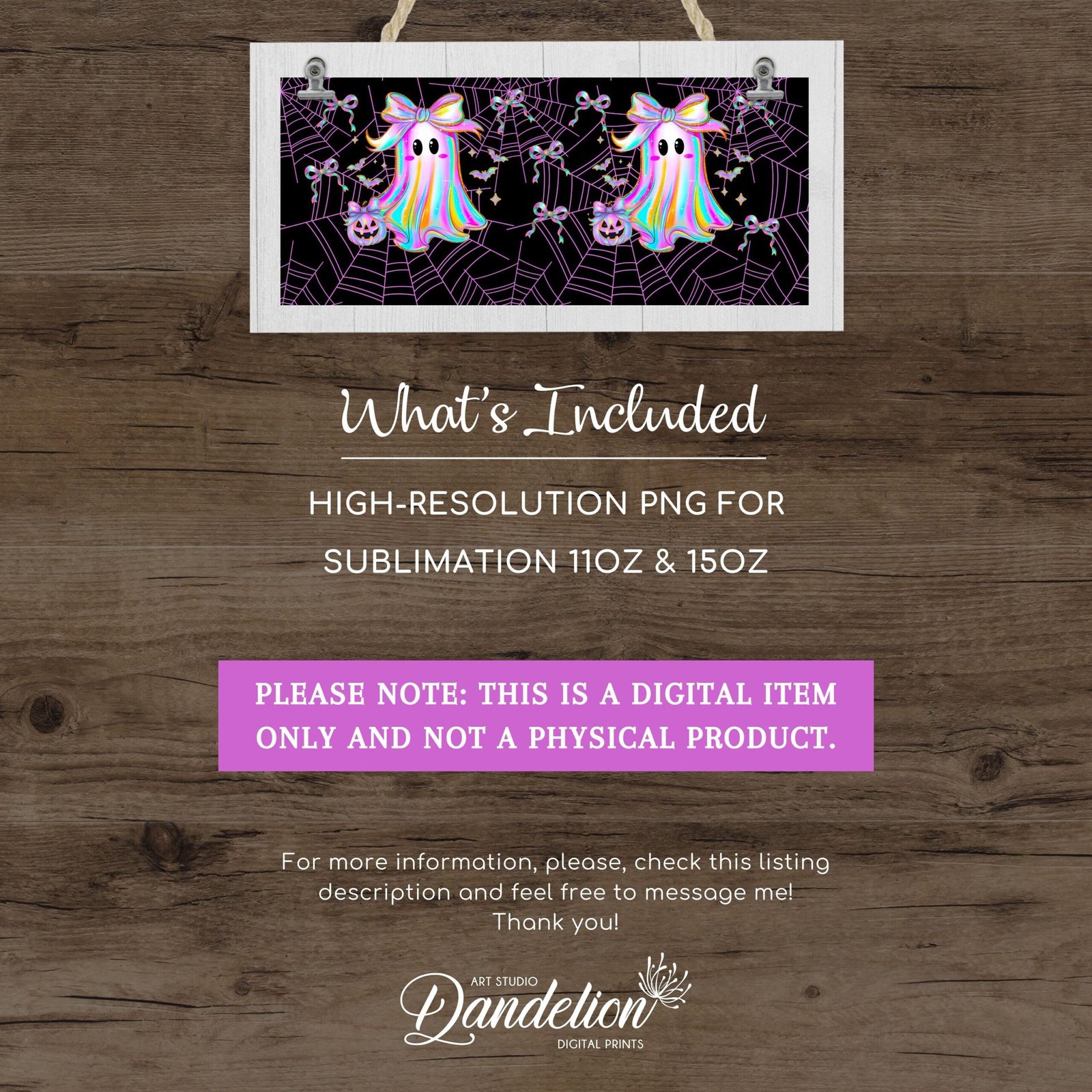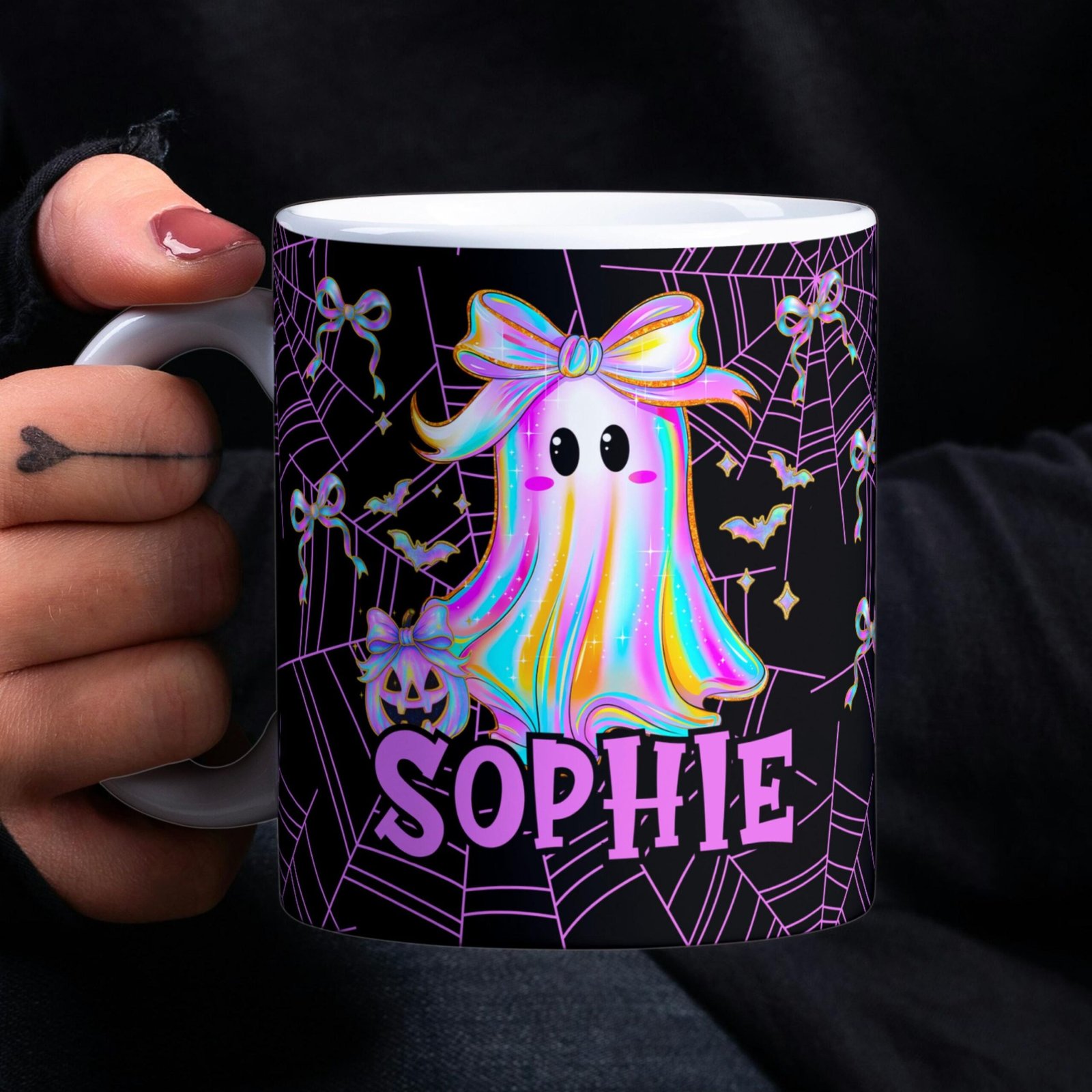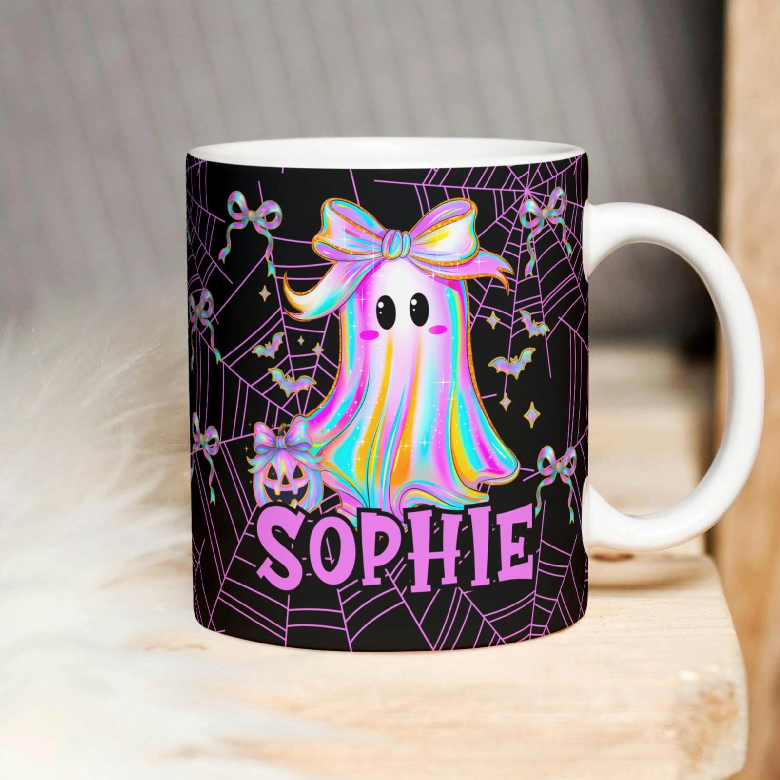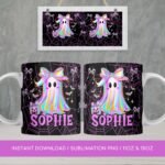 Halloween PNG Mug, Add Name Mug PNG File for Sublimation, Cute Girly Ghost Mug Wrap, Custom Kids Mug Transfers 11oz & 15oz, Digital Download