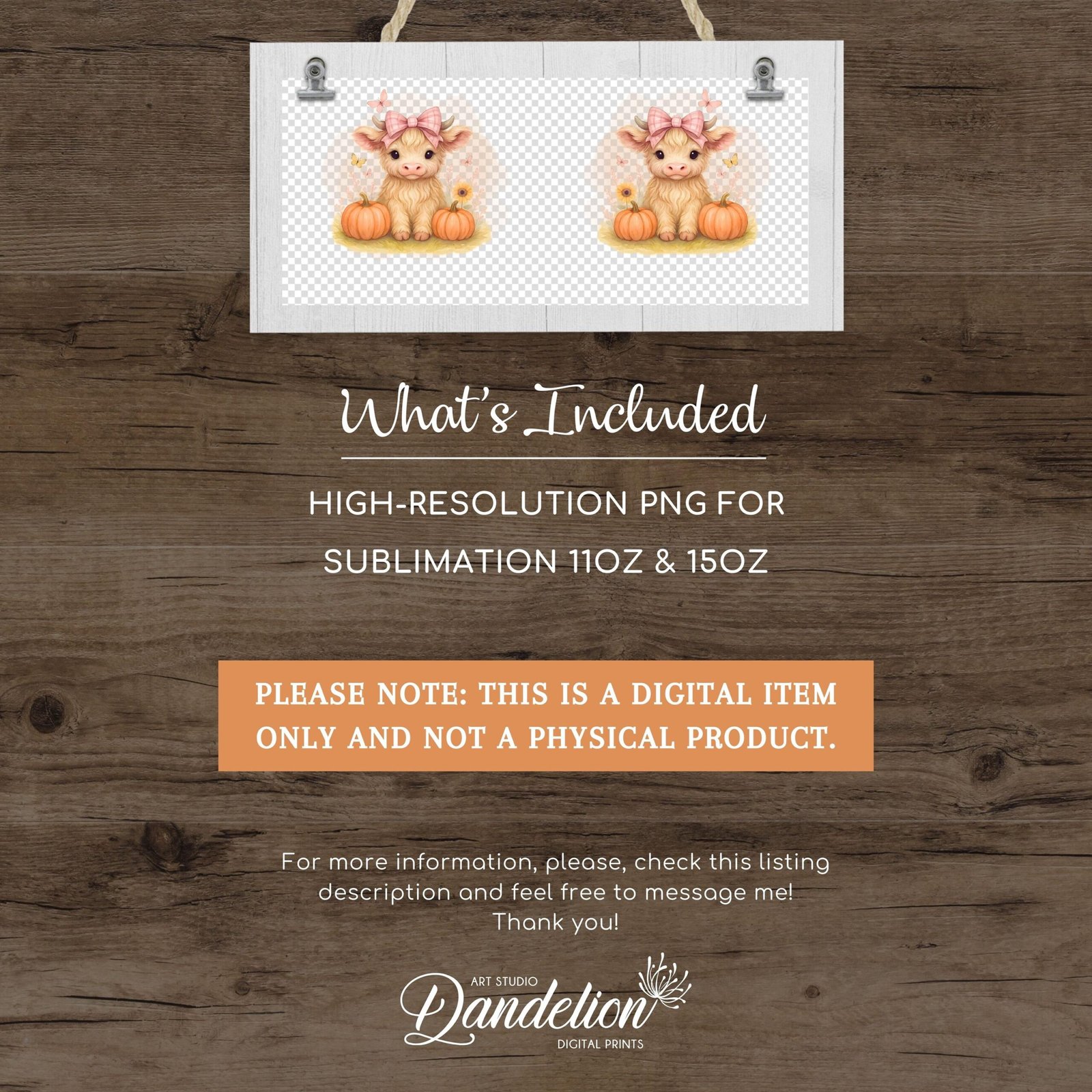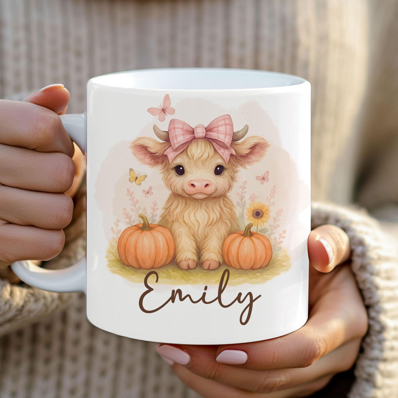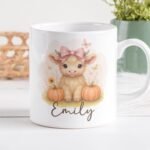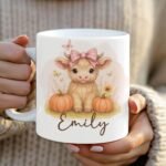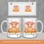 Highland Cow Mug Wrap, Custom Name Sublimation Mug, Cute Baby Cow PNG Mug, Thanksgiving Mug Transfers 11oz & 15oz, Fall Pumpkin PNG Mug.