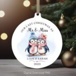 Last Christmas As Mr & Miss Round Ornament, Couple Christmas Sublimation Ornament PNG, Instant Download, Personalised Christmas Bauble PNG.