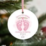 Mommy and Daddy Christmas Ornament PNG, Pregnancy Announcement PNG, Xmas Sublimation Bauble, Baby Footprint Ornament, Xmas Keepsake Wrap.