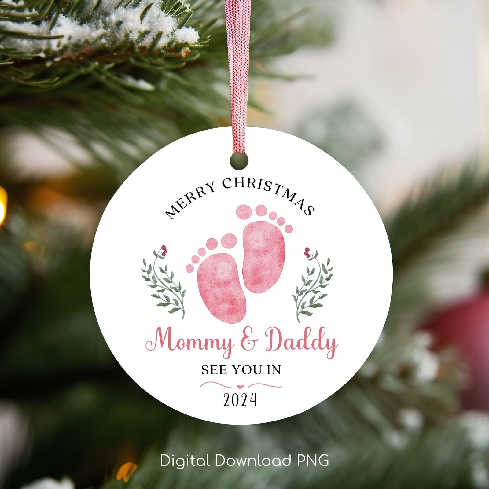 Mommy and Daddy Christmas Ornament PNG, Pregnancy Announcement Xmas Sublimation PNG Ornament, Instant Download, PNG Wrap Transfers Design.