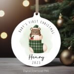 Personalized Baby’s 1st Christmas Ornament, Cute Baby Bear PNG Instant Download, Christmas Sublimation Ornament, PNG Wrap Transfers Design.