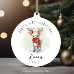 Personalized Baby’s 1st Christmas Ornament, Cute Baby Deer PNG Instant Download, Christmas Sublimation Ornament, PNG Wrap Transfers Design.