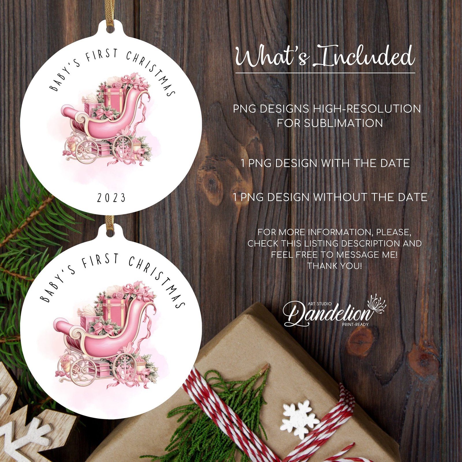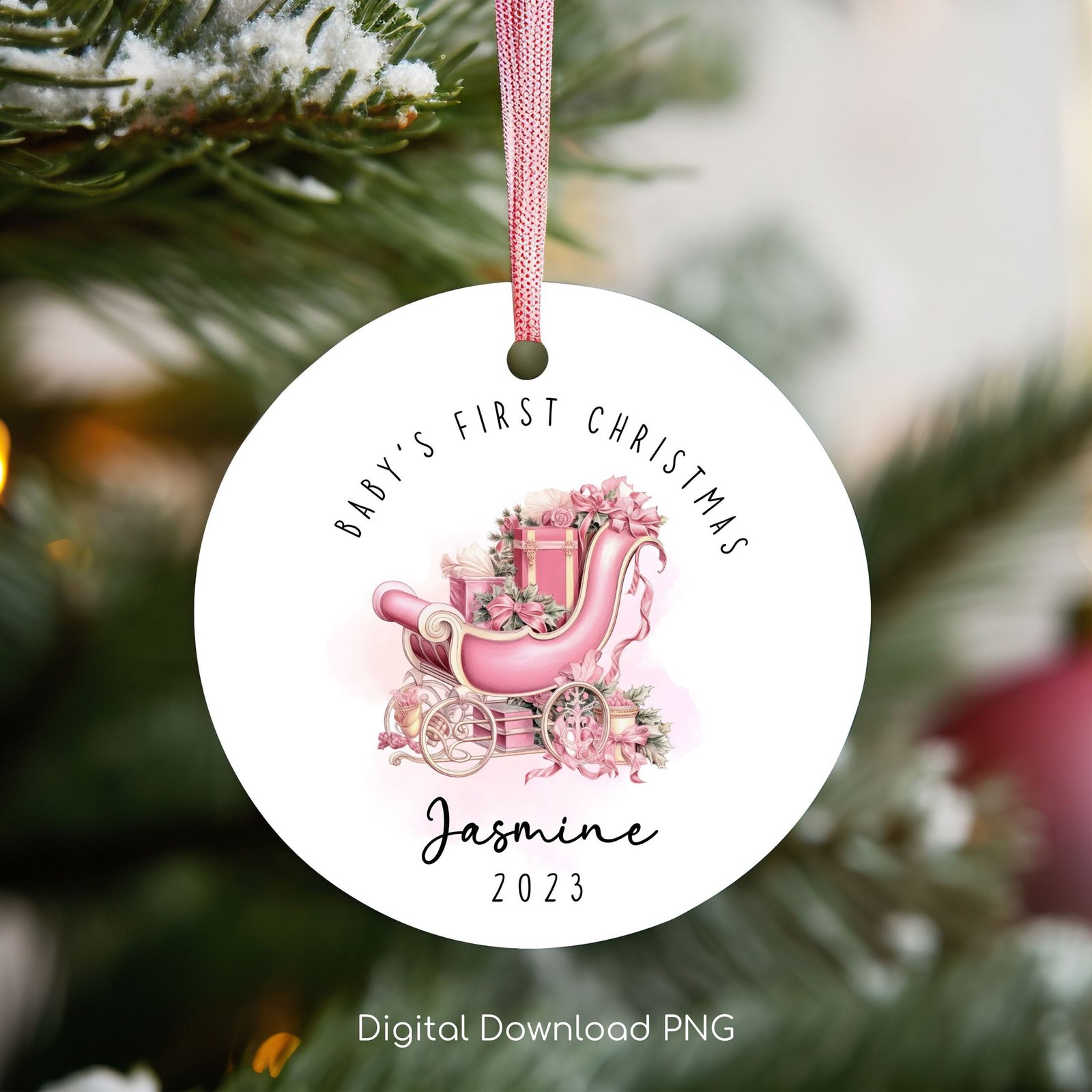 Personalized Baby’s 1st Christmas Ornament, Santa’s Sleigh PNG Instant Download, Christmas Sublimation Ornament, PNG Wrap Transfers Design.