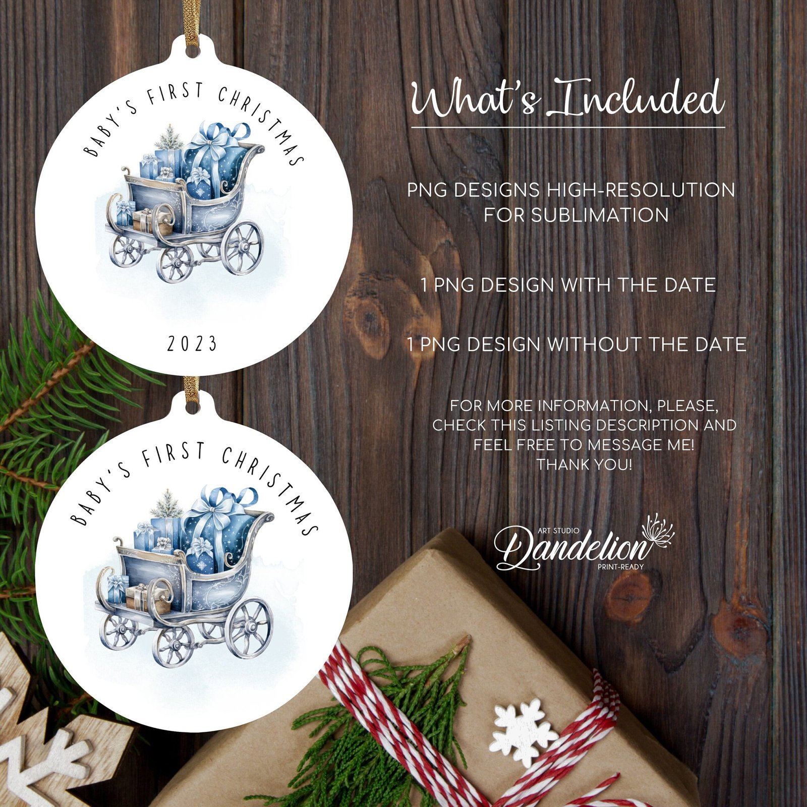 Personalized Baby’s 1st Christmas Ornament, Santa’s Sleigh PNG Instant Download, Christmas Sublimation Ornament, PNG Wrap Transfers Design.