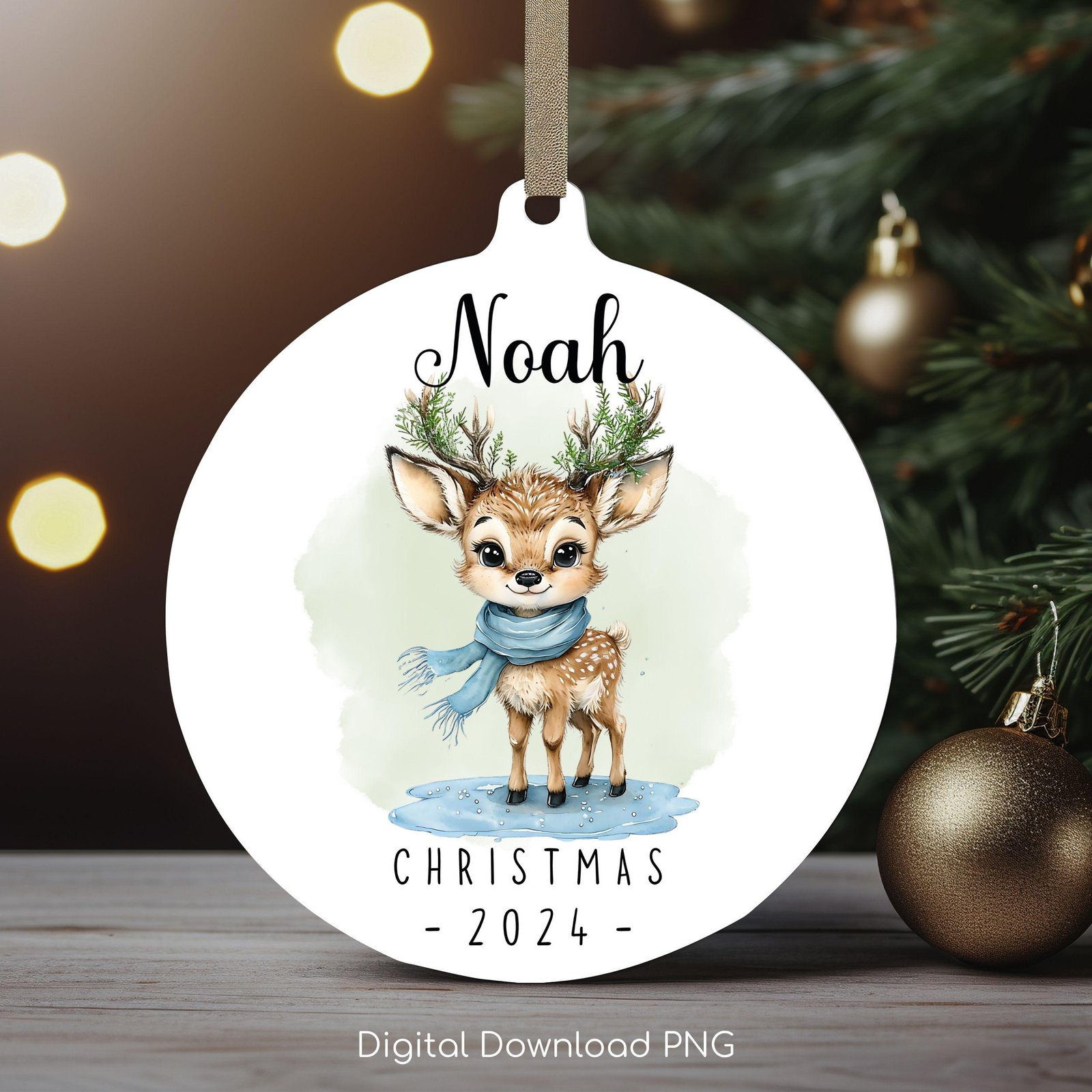 Personalized Christmas Ornament, Cute Baby Deer PNG Instant Download, Christmas Keepsake Sublimation Template, PNG Wrap Transfers Design.