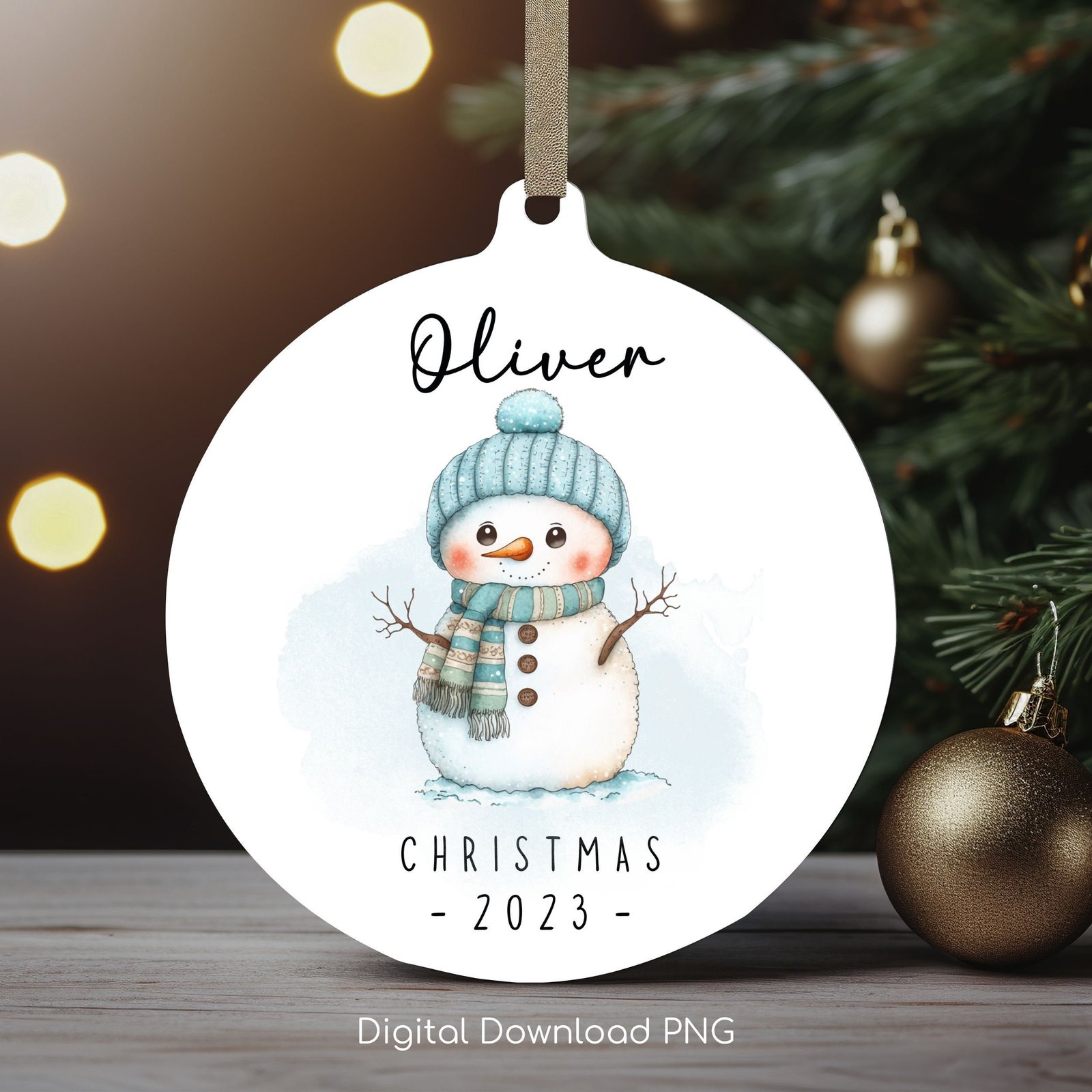 Personalized Christmas Ornament, Cute Baby Snowman PNG Instant Download, Christmas Keepsake Sublimation Template, PNG Wrap Transfers Design.